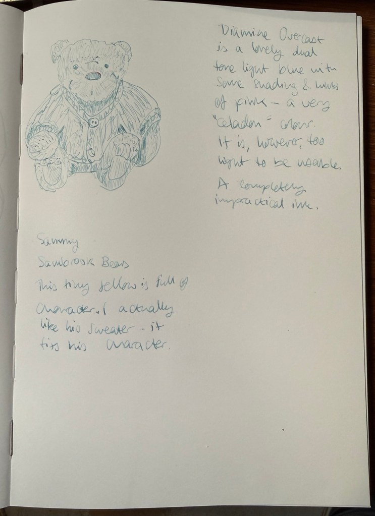 This is Little George, from Collection International – number 311 out of a run of 2000. I have a similar bear in a different size, and I’ve sketched them both in the past, but his weird fur was great for showcasing this ink’s properties.