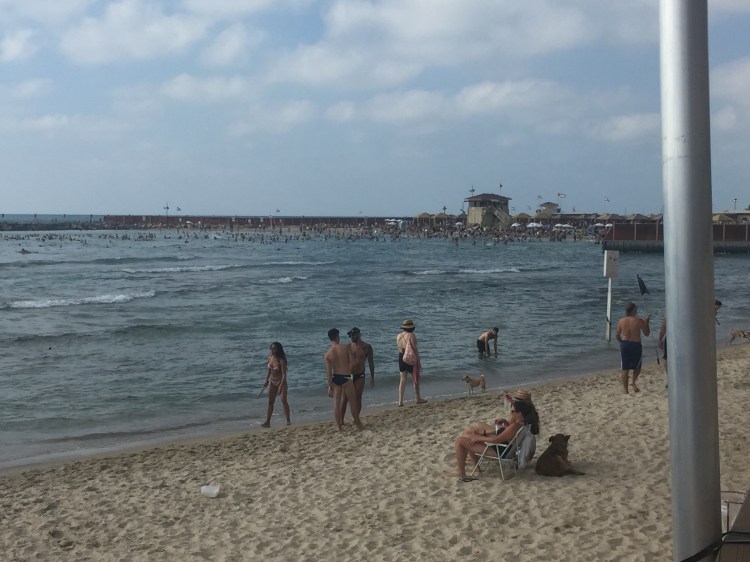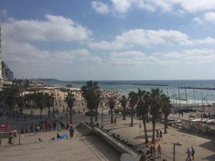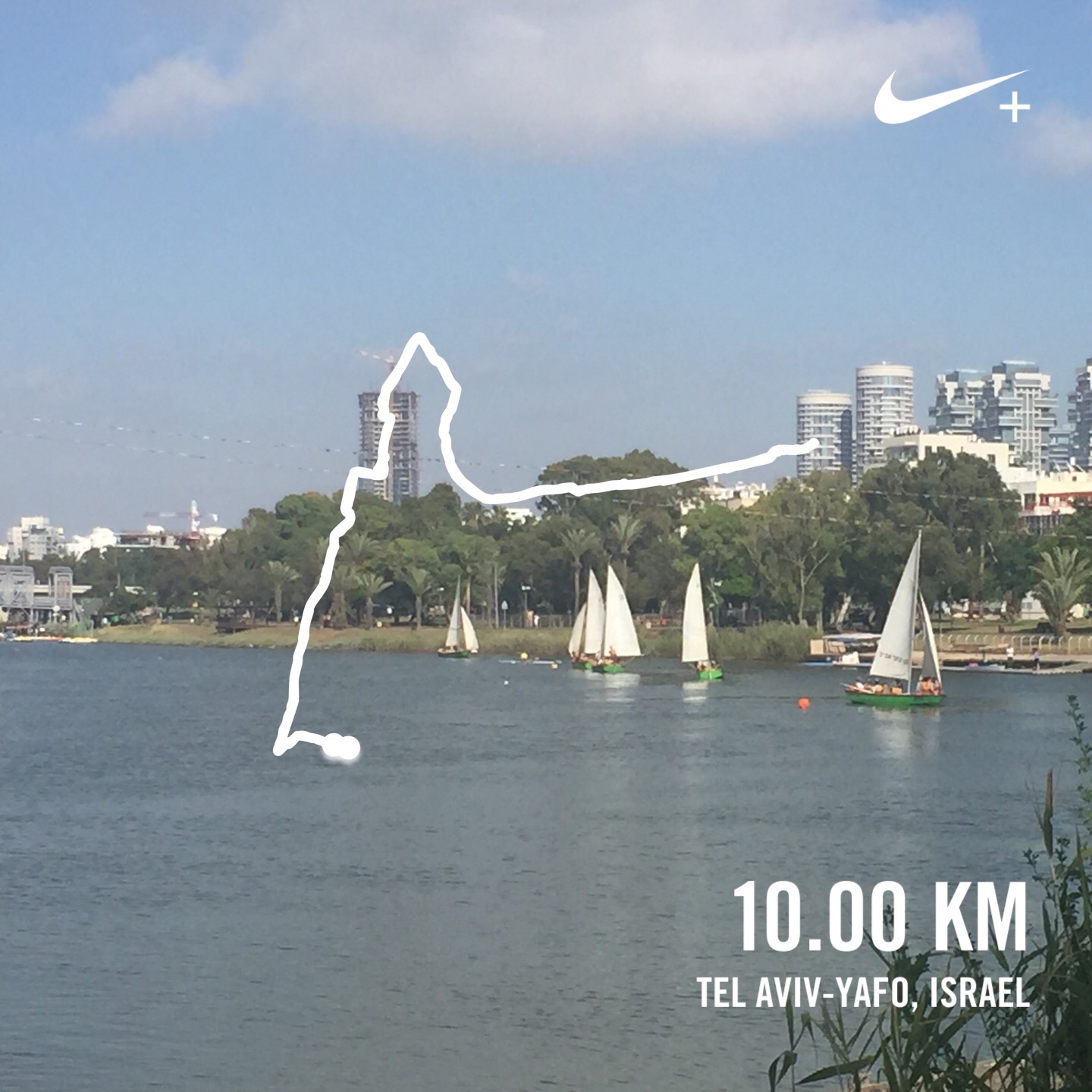 Started out way too early in the afternoon. Despite hat, sunglasses, sunscreen and water, this was a tough one — but I’m glad I ran it. Bathing season is now in full swing in Tel Aviv, and the holiday weekend meant that the beaches were packed.