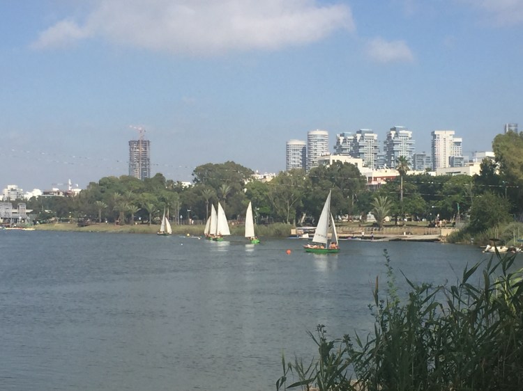 The sea scouts were out and about, rowing and sailing on the Yarkon.
