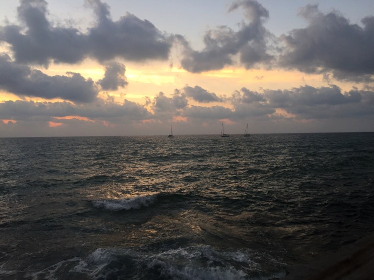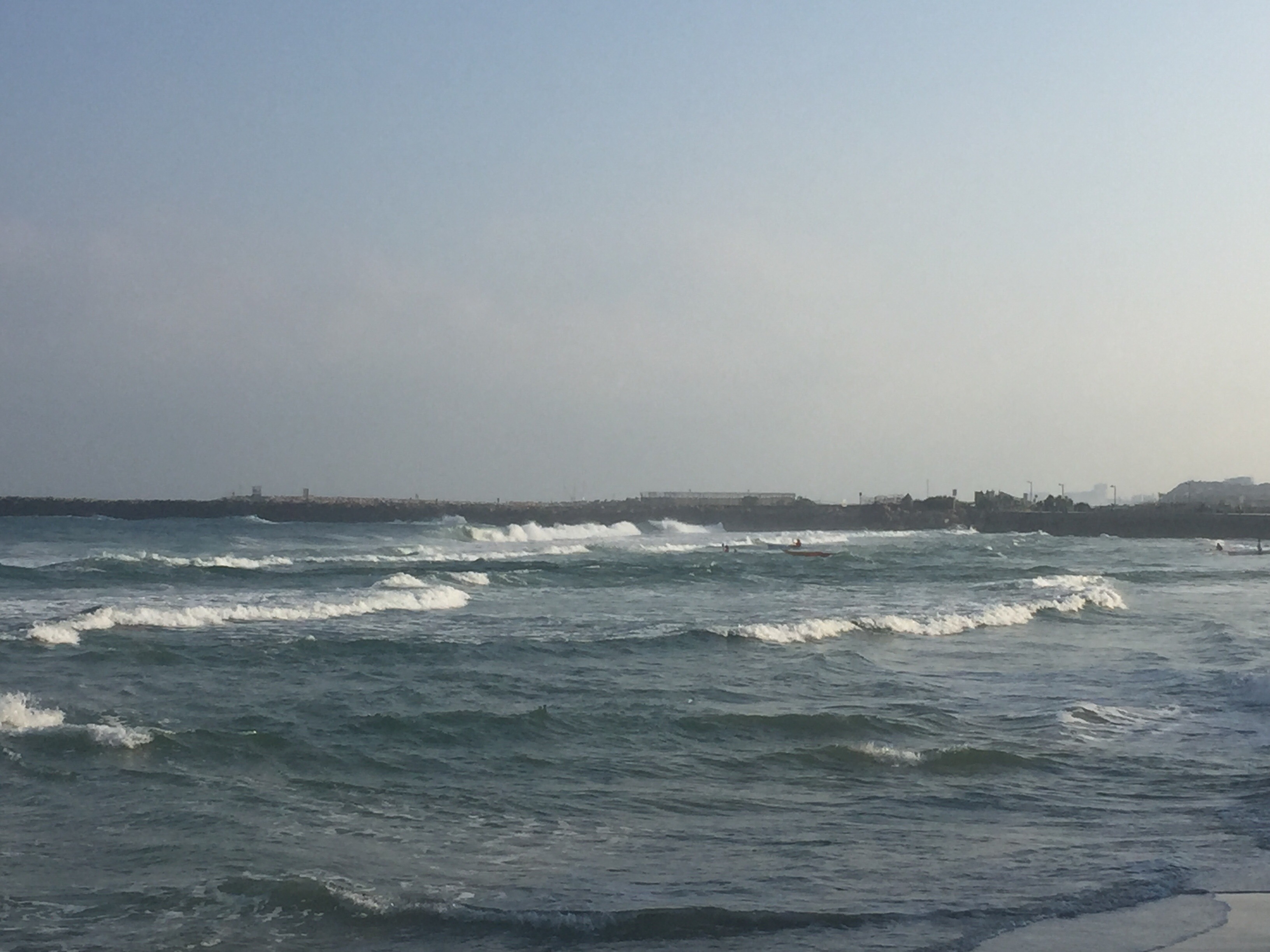 The sea was pretty stormy, and surfers and kayaks were out in force. It looks much windier than it was, though.