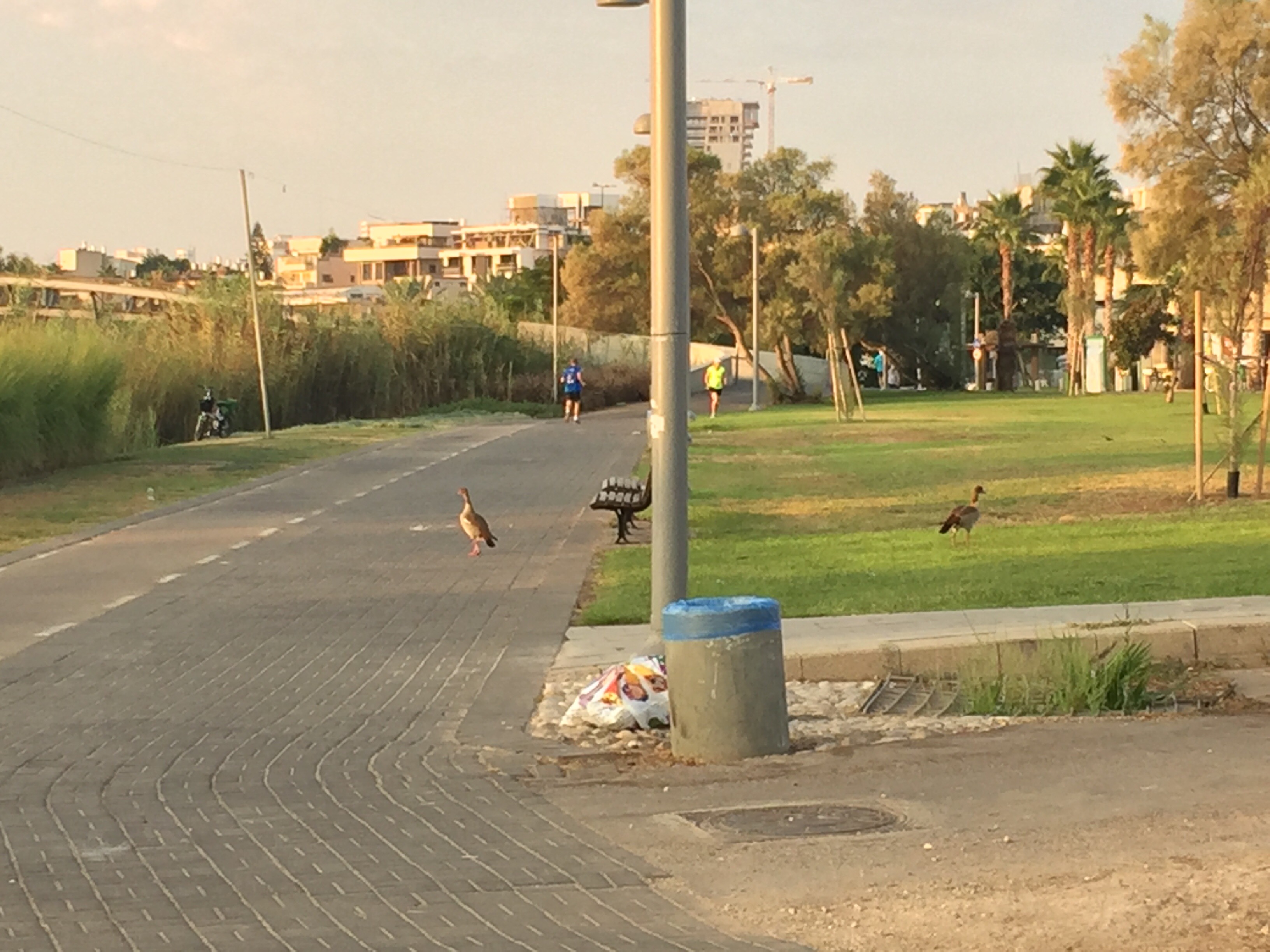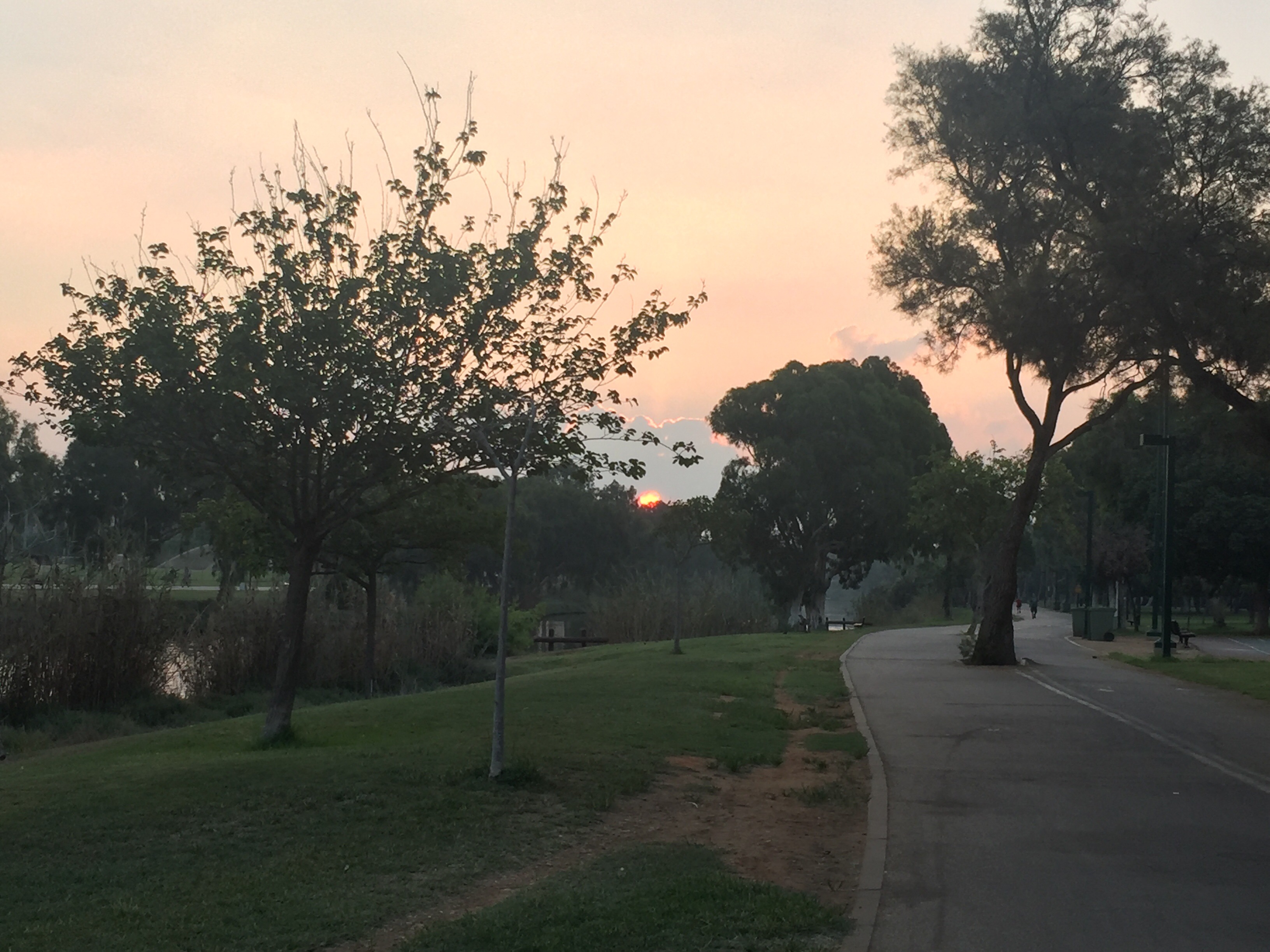 The park was very peaceful in the morning, and a friendly walker admired the sunrise with me, cheering me on.