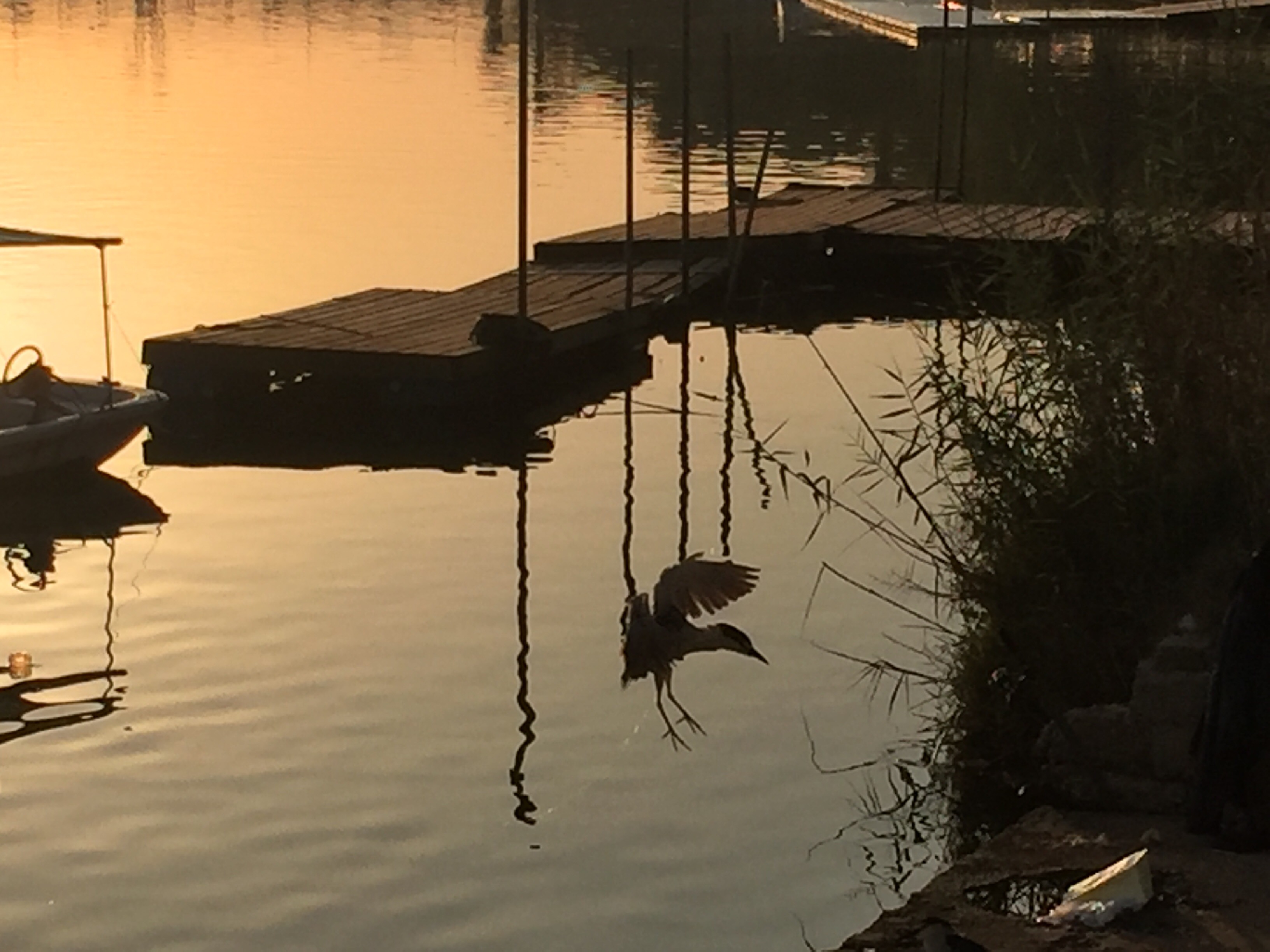 I love that the little heron is waiting for the fishermen to fail.