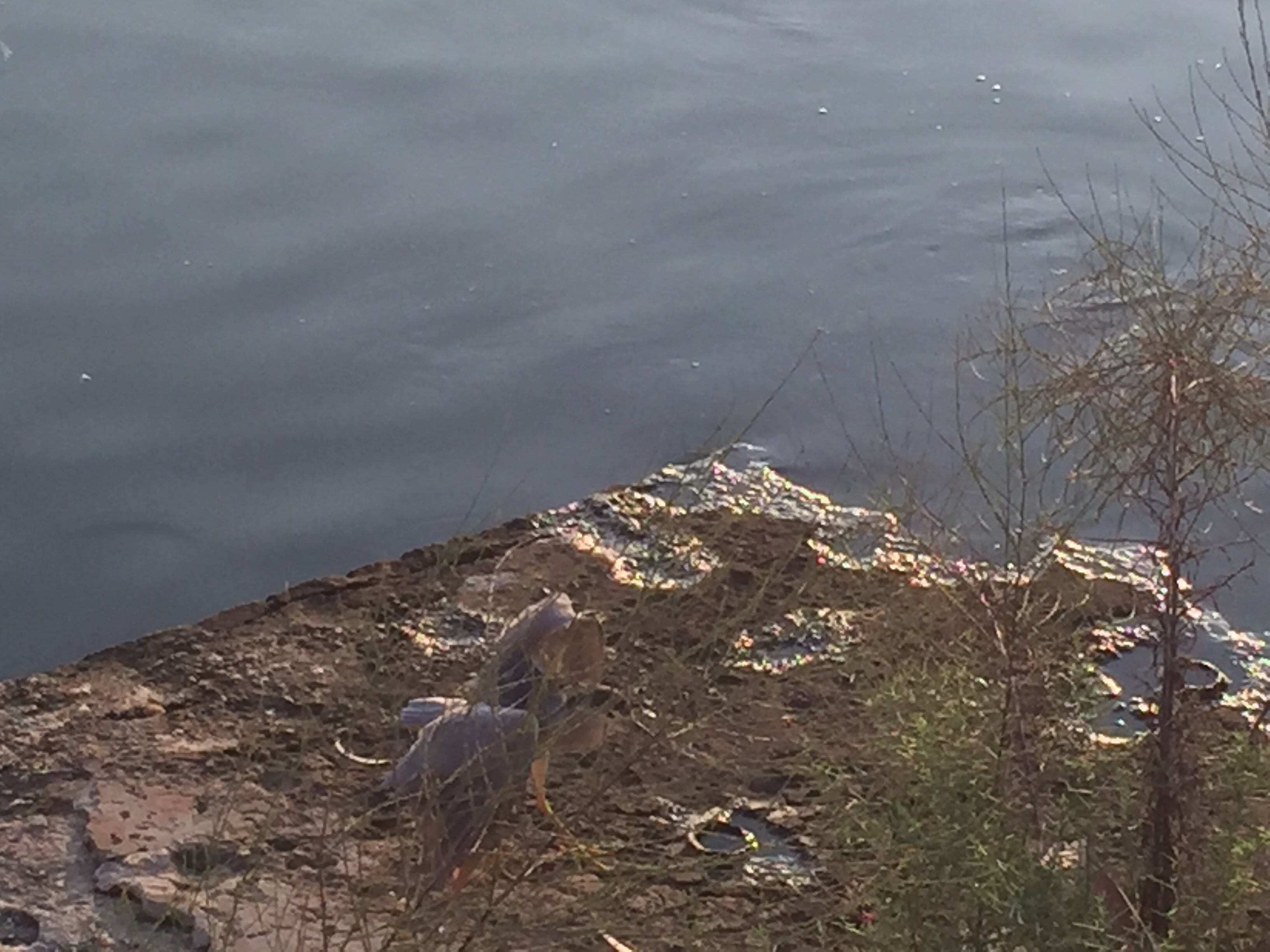 Sunrise peering over the trees — my phone camera is doing it no justice.