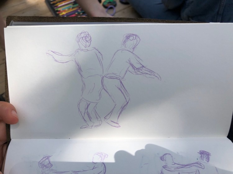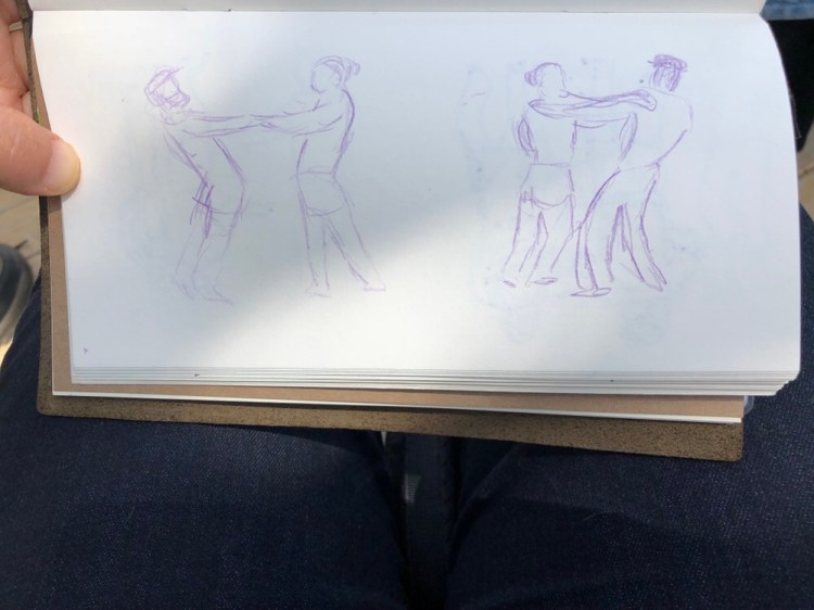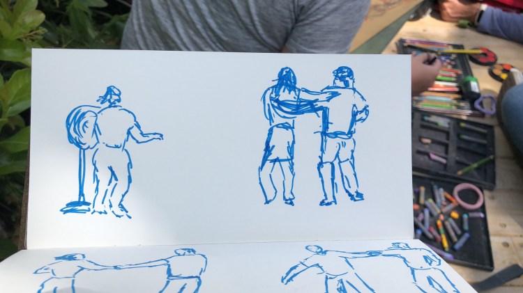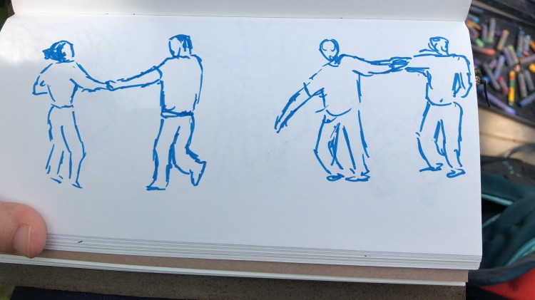 I turned to quick gesture drawing to get the most out of the event. Moved to a Faber-Castell blue brush pen for a bit of a change: