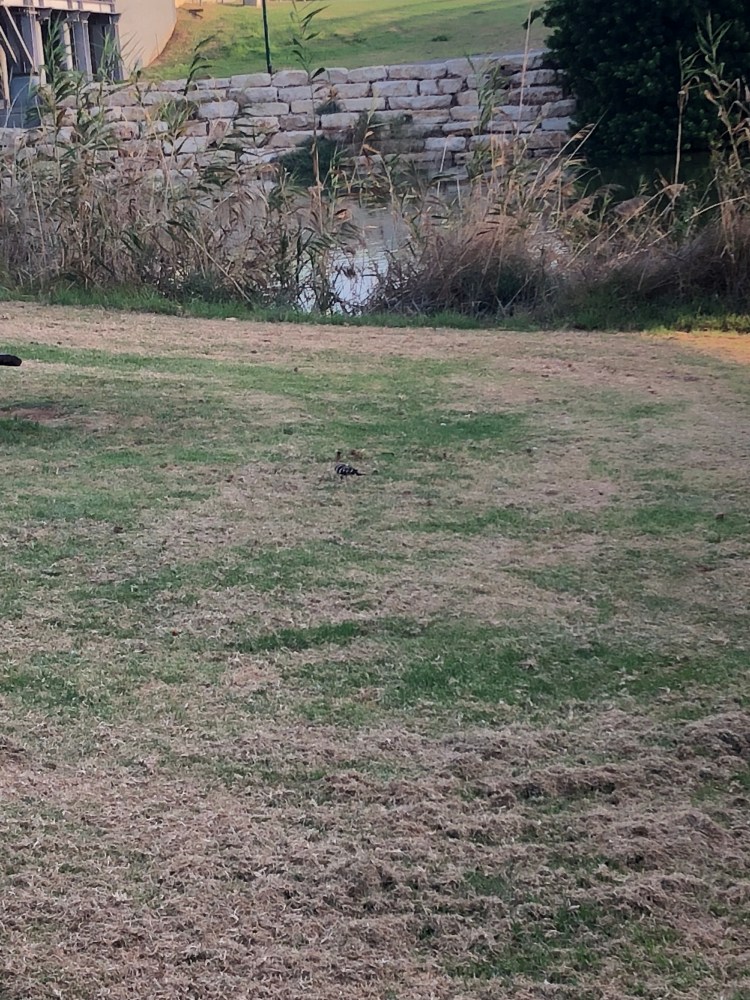 Near the halfway point I saw a hoopoe, with its unmistakable crown, poking around the grass for insects. It’s our national bird, which is a bit funny, since hoopoes generally migrate to Israel on during the summer.
