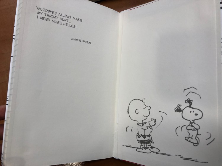 I’ve noticed that the hardest part of journaling for me is when I’m just getting started with a new notebook. Blank pages are scary and discouraging, and at that point I’ve invested so much time and effort in my old notebook that I really don’t feel like moving to a new one. Like Charlie Brown says, “Goodbyes always make my throat hurt… I need more hellos”.
