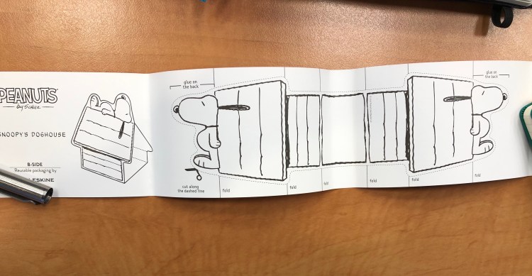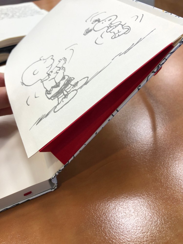 That sleeve looks transparent, but is just perfectly aligned, that’s all. “Are you happy right now?” “I guess so..”Gramma knows best.No ProblemOnly the best end papers in any Moleskine edition to date.The back end paper is a sweet and a little heartbreaking – like the best Peanuts strips.Bonk! Stickers galore.Red detail on the famous back pocket.Build your own Snoopy’s doghouse from the B-Side of the sleeve.