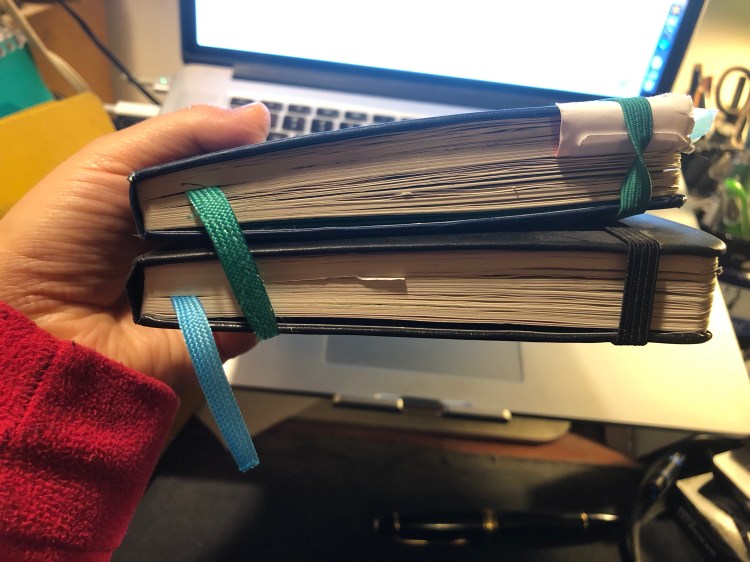 First two notebooks of 2018. I was journaling a lot more then, so each one contains two months of notes, bits and pieces that I glue in, plans and doodles.
