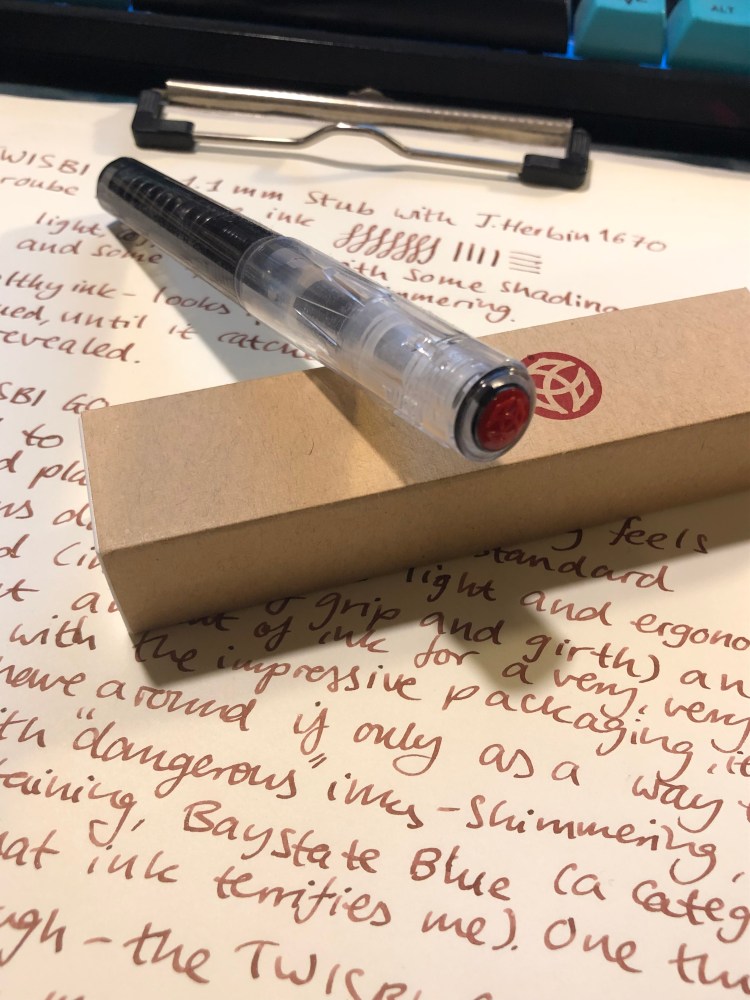 But then you start to write with it, and the silly little body has good ink capacity, is easy to fill, and most importantly, it has a TWSBI nib. TWSBI nibs are phenomenally good for the price, and they come in 1.1 stub sizes, which are super fun to use.