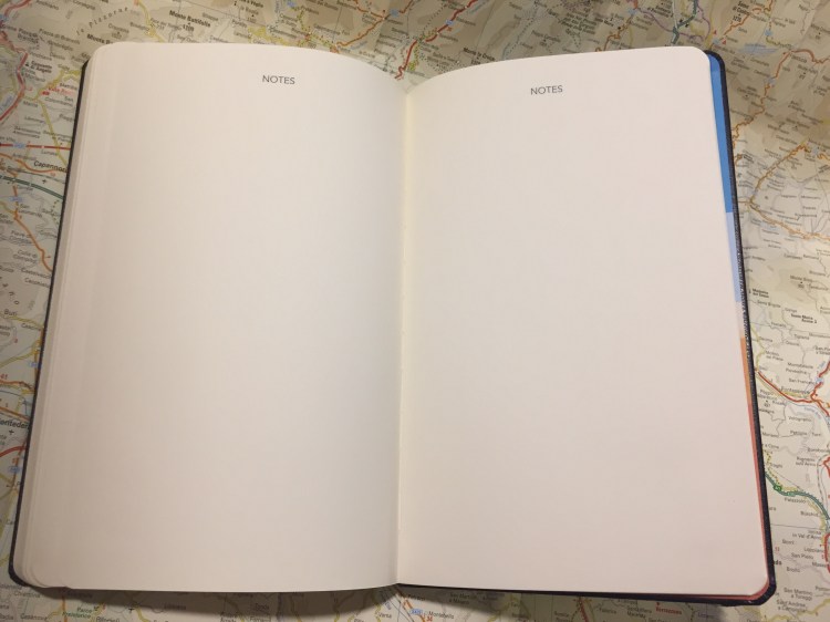 When you remove the paper band you get two simple looking Moleskines, one embossed with Chatwin’s name, the title of the book and the publisher’s name. The second is a regular plain softcover Moleskine, and in between the two is a cardboard separator with “Enjoy your travel writing” written on it.