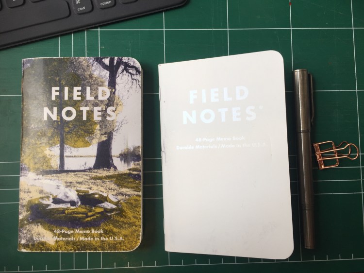 In: Snowblind. Somewhat ironically this edition shows itself off best in the summer. It’s going to get dinged up and grimy, but that’s just what happens to used notebooks, especially ones with light coloured covers.