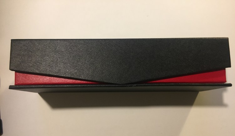 That black box is designed like the boxes high end Pelikans come in (including a cushioned interior). It’s designed. There’s texture to it, a logo and the edges are rounded up so you can see the red colour underneath. The box even comes with magnetic closure. It’s well-made enough and good-looking enough to be used as a display box.