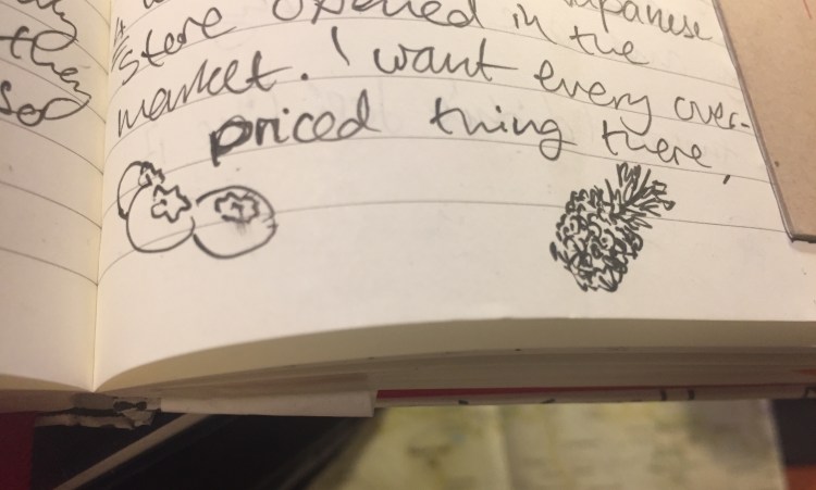 I also draw a little in my notebook, tiny thumbnails of things that I want to remember later, or that I just feel like drawing. These are usually food doodles, as I don’t really like to photograph my food.