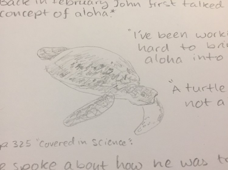 Doodling seasonal fruit in the margins.