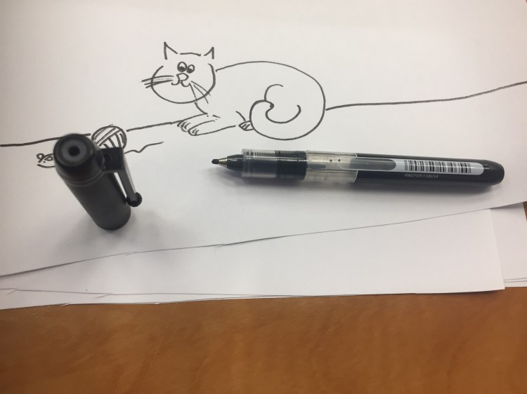 The end of summer is upon us and my services as creator of kids’ colouring pages are now in high demand in the office, as desperate parents bring their kids to work for a few hours in lieu of camp or a sitter. After ruining several brush pens on these drawings I’ve settled on the best pen for this purpose: the Pilot V Sign Pen.