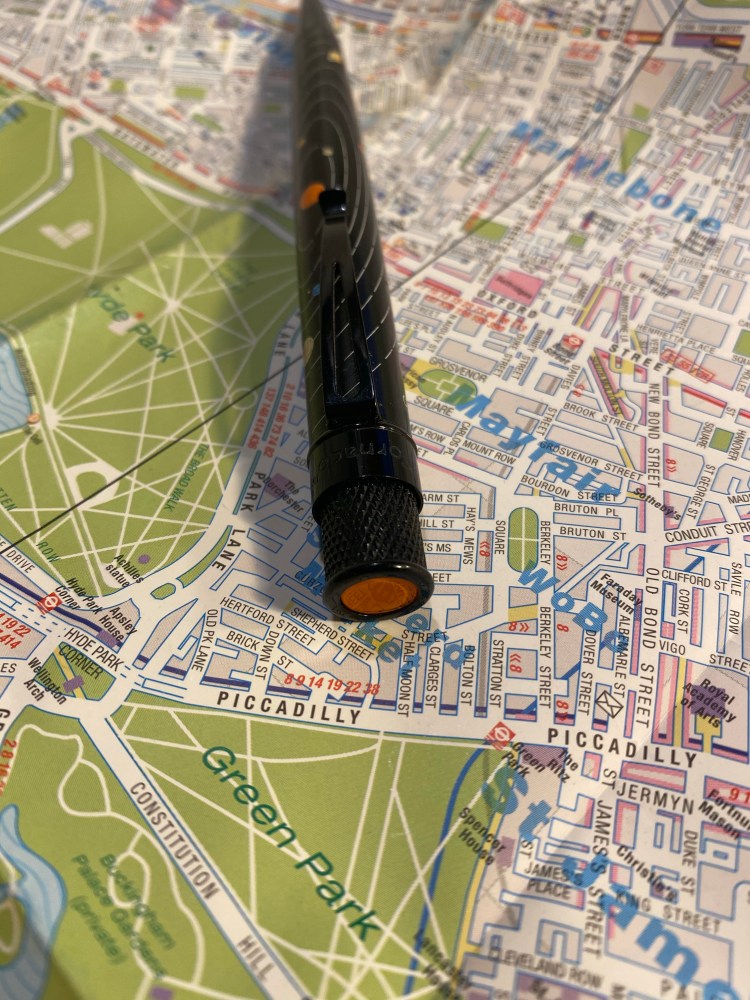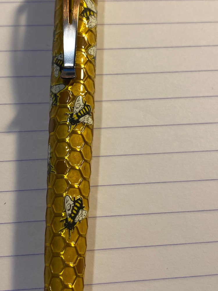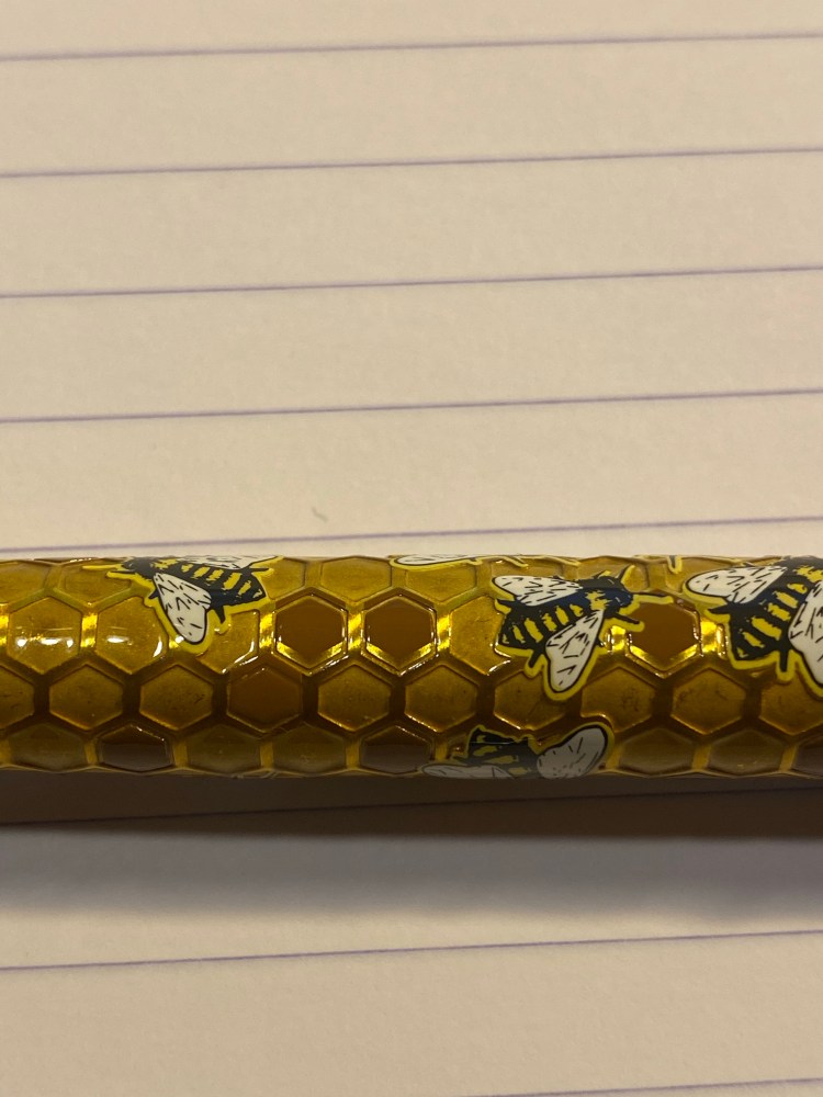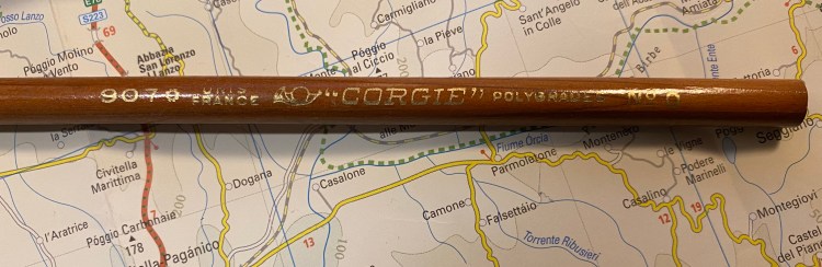 Here’s the imprint (it’s hard to photograph, as the lacquer gets in the way. There are basically two fonts in use, and a very charming bugle logo. The Corgié à Paris factory was active from 1923 to around 1986 (thanks Brand Name Pencils) and if I’d have to venture a guess I think that these are from the ’60s, but it’s really hard to tell.