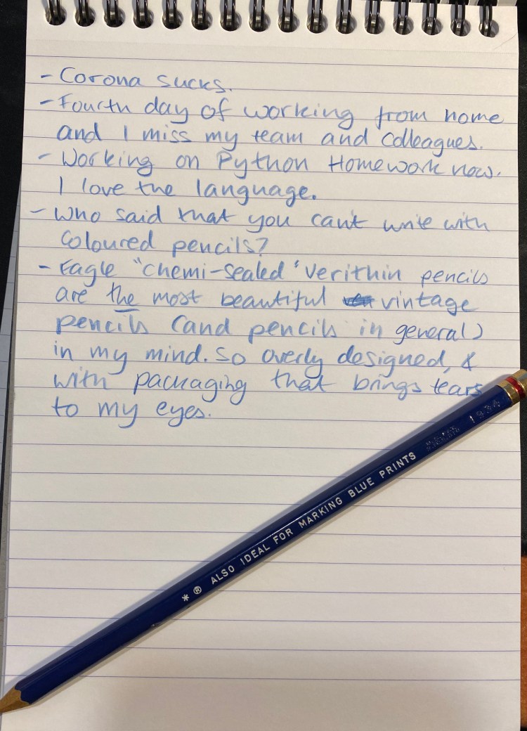 It’s National Pencil Day and I decided to celebrate. Last year I picked up some vintage pencils in a stall in Spitalfields market in London, and they’ve been languishing unloved in their box ever since. The truth is I felt that they were too pretty to sharpen and use, which is both understandable (I mean look at them!) and silly. Pencils are meant to be sharpened, period.