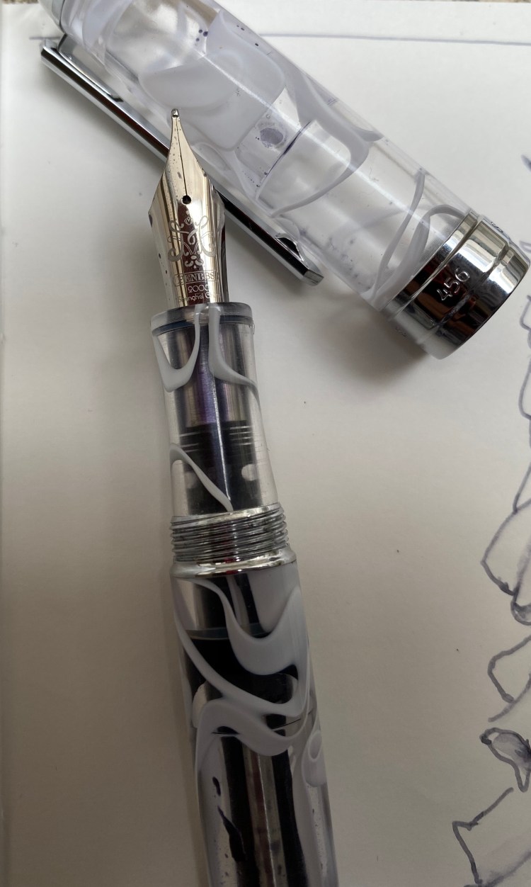 The hardware is chrome, and so very bright. This works well with the overall colour scheme. The acrylic body does pick up lint in a way that Retro 51’s metal-bodied pens do not. I’m not sure this would make for a good pocket carry pen because of that.