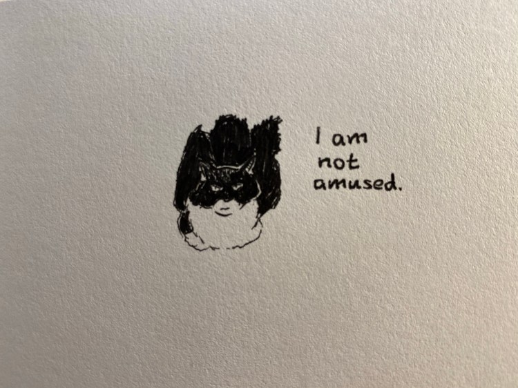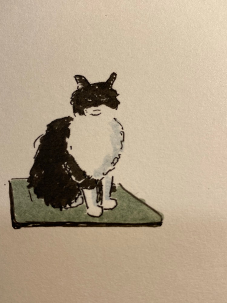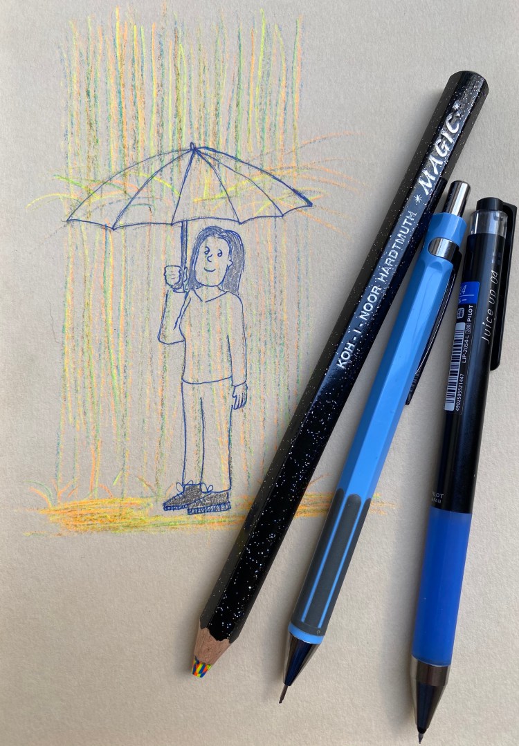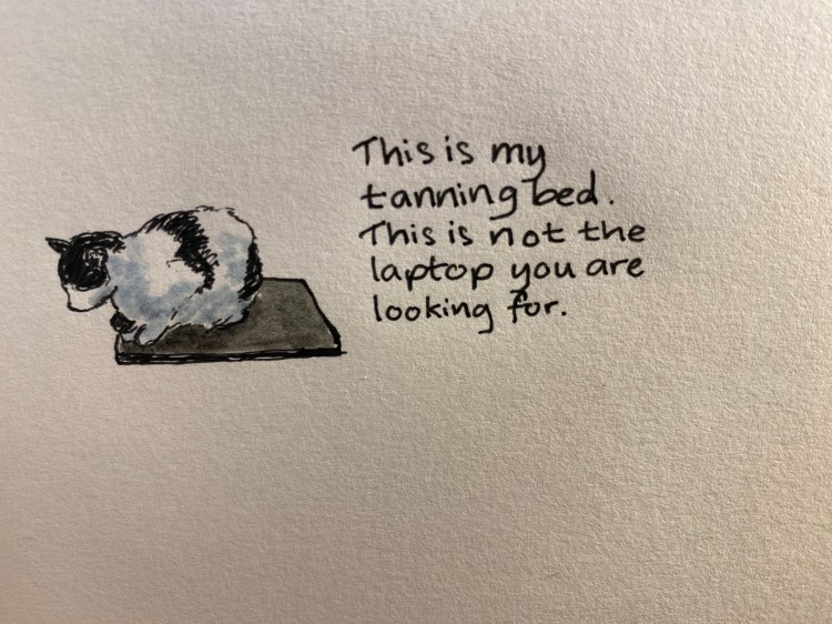 The above drawing was drawn with the Retro 51 Blue Acrylic and the Ohto FlashDry 0.5 gel ink refill, plus some Faber-Castell PITT brush pens. My parents’ cats have ideas about my dad’s laptop that don’t coincide with his.