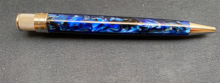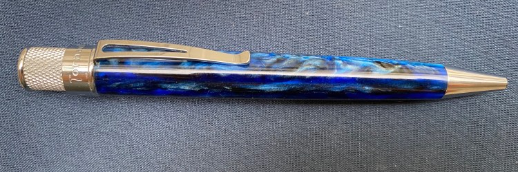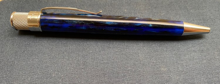 The finial features a dark navy blue, almost black, disc. I kind of wish that Retro 51 had made the finial out of the swirly acrylic material, but I guess that would have hiked up the price significantly.