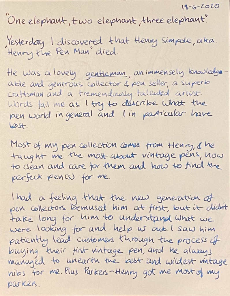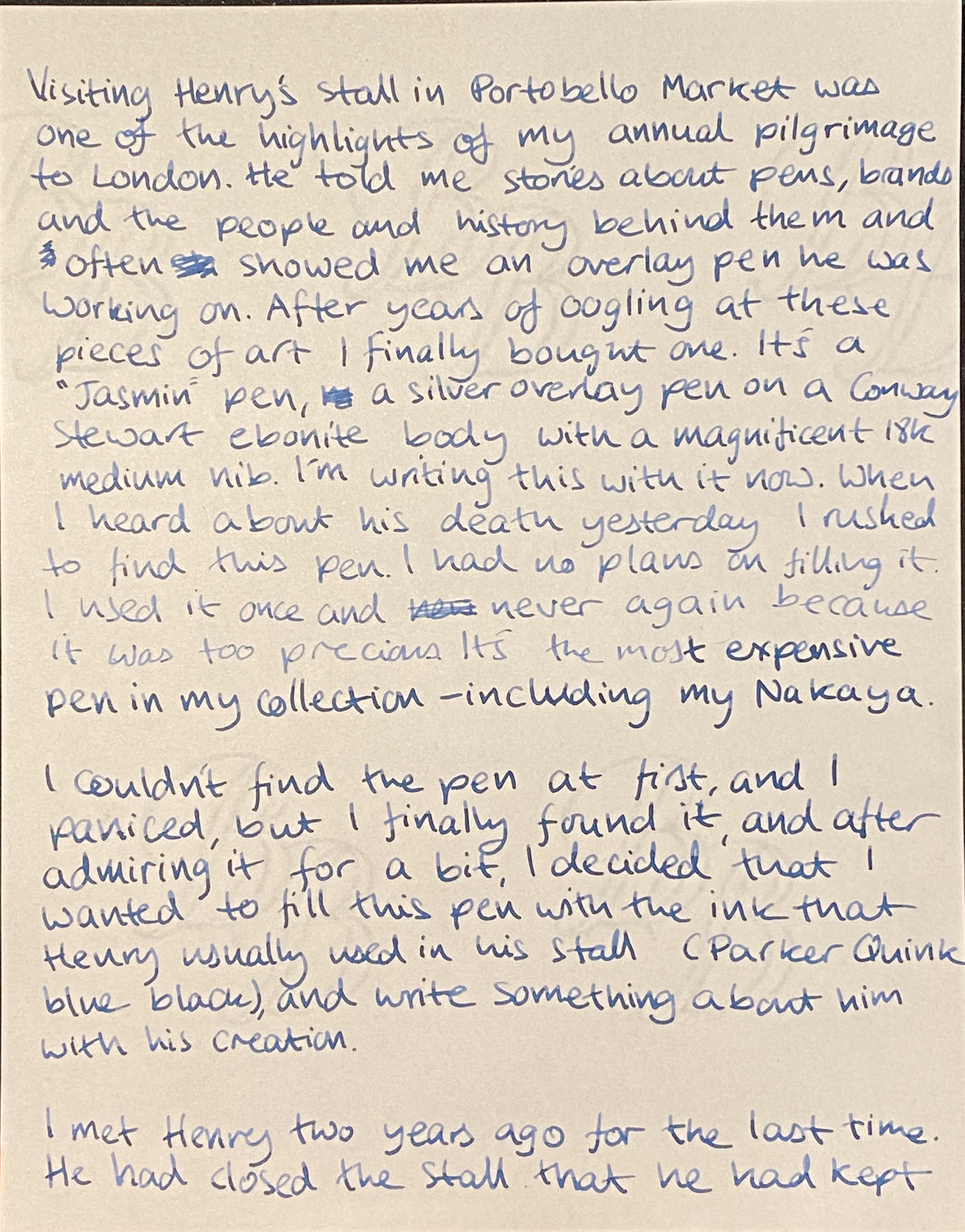 Parker Quink Blue Black is neither waterproof or water resistant, just like Waterman Mysterious Blue. Yet it takes a bit more time and effort to clean the Parker ink out of pens than the Waterman’s (my gold standard for easy cleaning ink). It’s vintage pen safe, and an excellent staple ink, available practically everywhere that sells stationery or art supplies. In times where shipping prices have skyrocketed and many places no longer offer shipping to all destinations, it’s good to know that there are still good, cheap and widely available ink options out there.