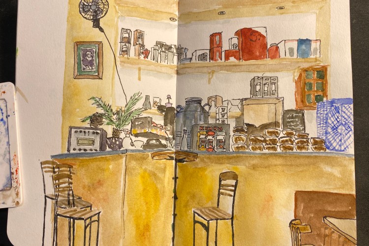 Here’s the inking. You can see the pencil marks beneath, and I waited for the ink to completely dry before trying to erase the underdrawing.