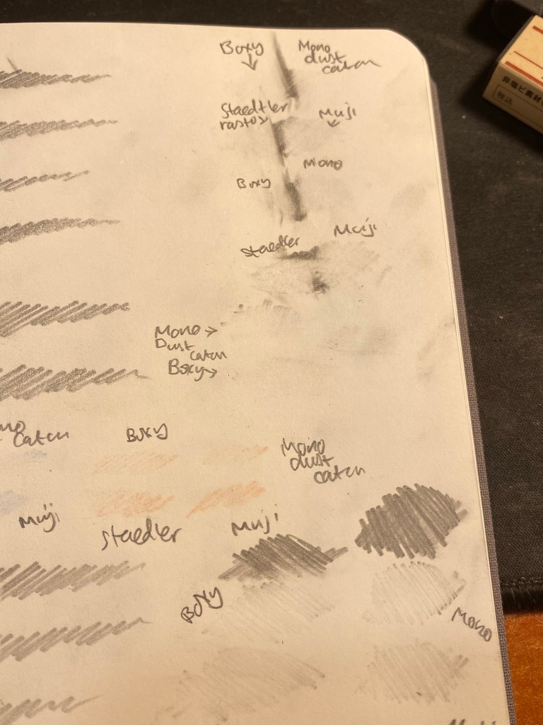 The Muji erased faired the best at this part of the test, although I still wouldn’t recommend using it to erase underdrawings.