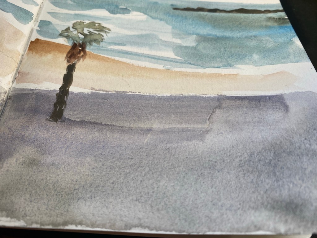 Here’s a very quick sketch with these paints on the cold press paper. They are built for washes and wet on wet work, and so relish this paper.