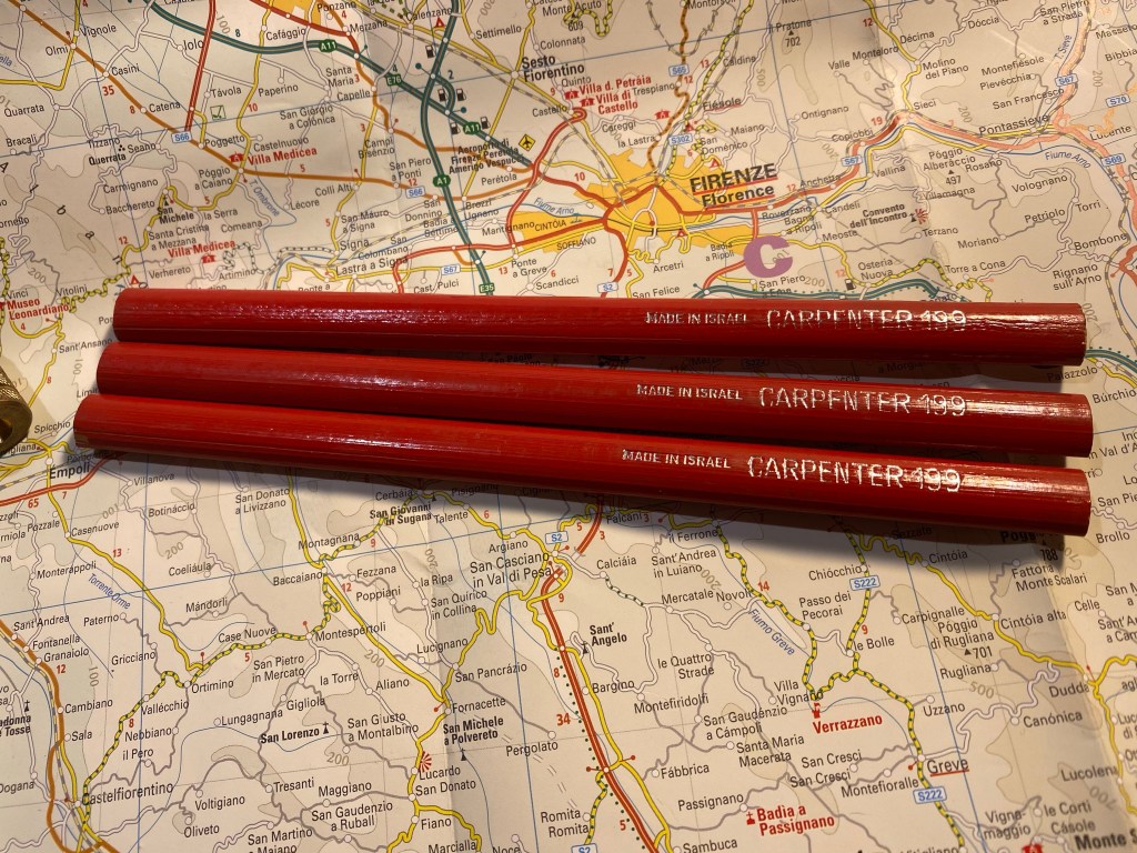 Carpenter pencils are something I rarely find in stationery stores but do sometimes find in flea markets. In this case I lucked on three perfect Jerusalem Pencils Carpenter 199 pencils.