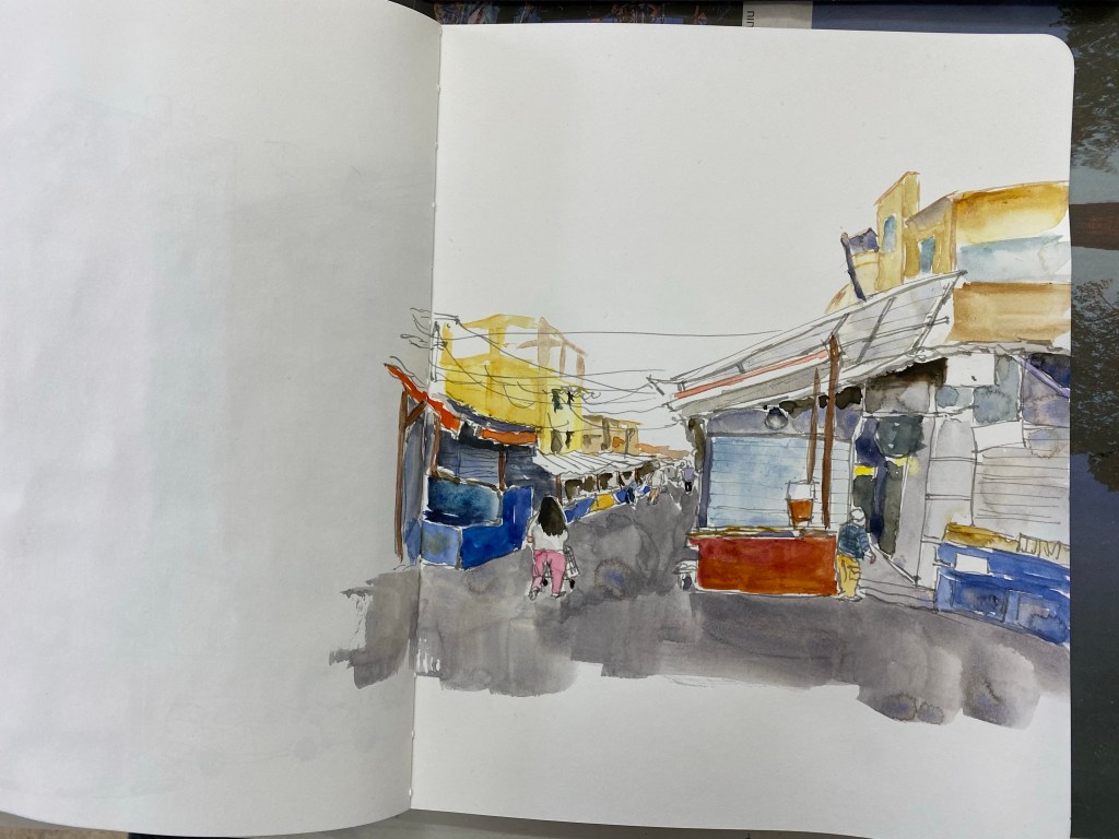 Catching up on some more sketchbook pages from my Sketchbook Design course as I’m working on giving my palette the largest overhaul it’s had since I started painting with watercolours. This page was inspired by the final box I got from the Tel Aviv muncipality’s “The Box” project, created to support local businesses during the lockdown.