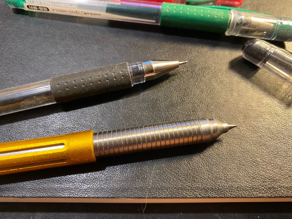 You can see the difference between the Signo Needle tip on the top, and Signo DX tip in my Spoke pen on the bottom. It’s basically the same tip just tapered more acutely.