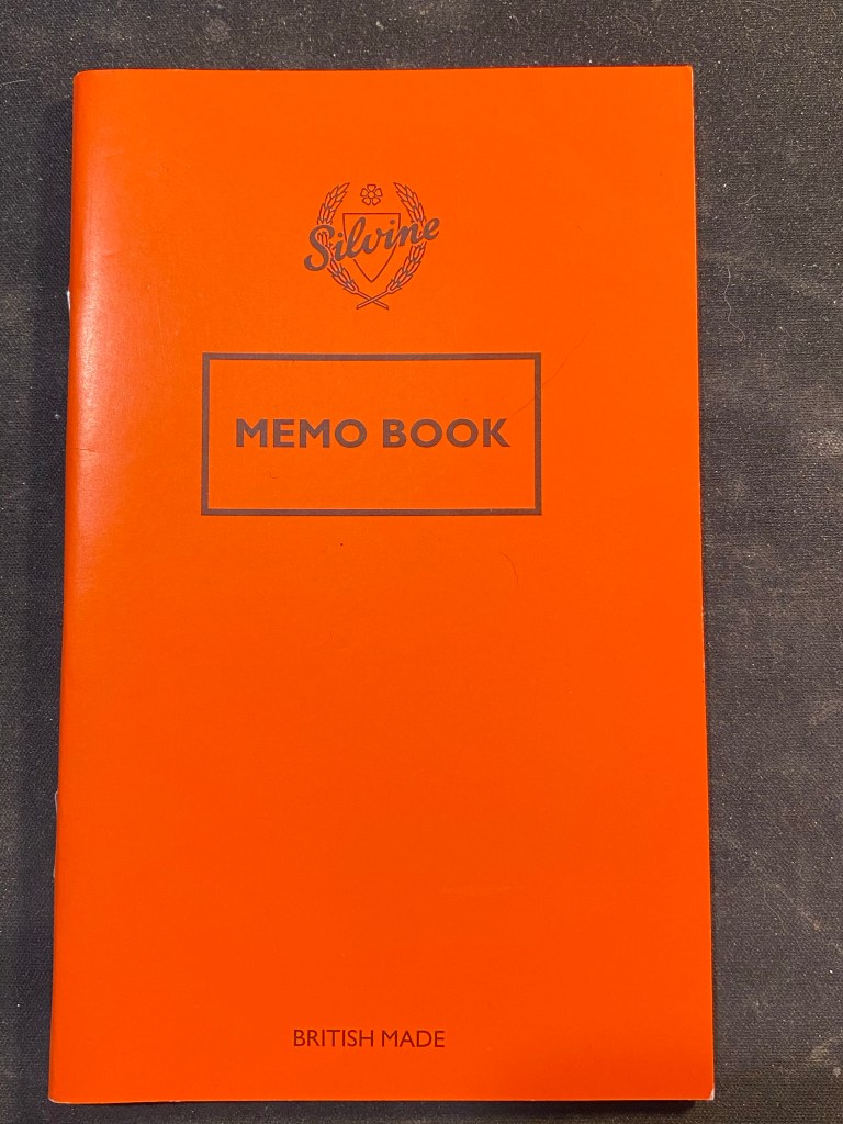 The Silvine Memo Book is a 159x95mm feint ruled staple bound notebook with zero frills. The cover is made of construction paper, thinner than the standard Field Notes one. The corners aren’t rounded, and there’s no printing on the inside of the cover. The front cover is a big believer in the “says what it does on the tin” school of thought: it’s a British made memo book by Silvine.