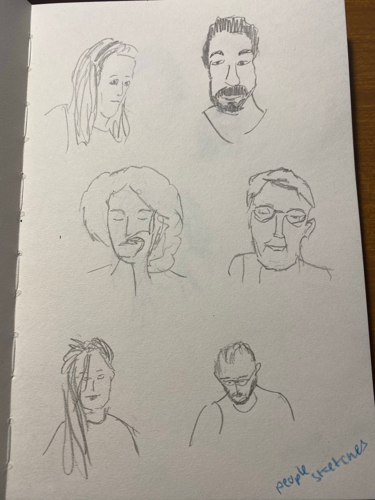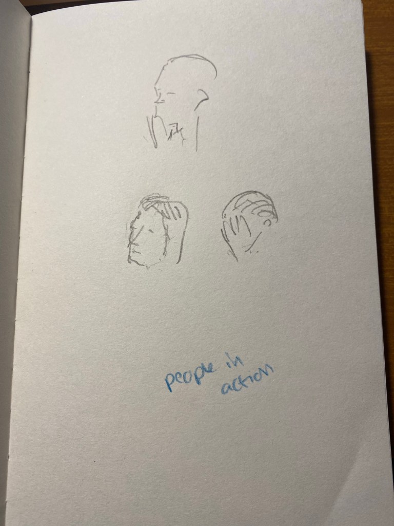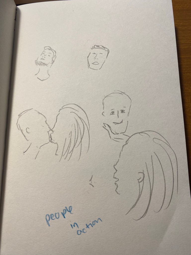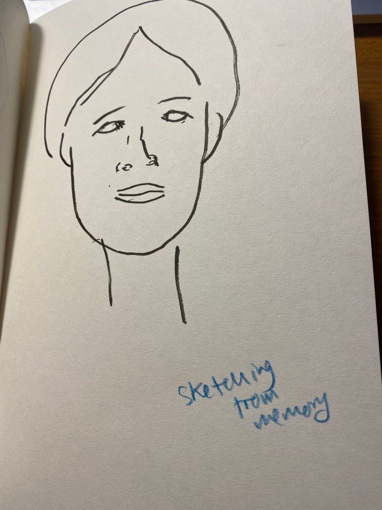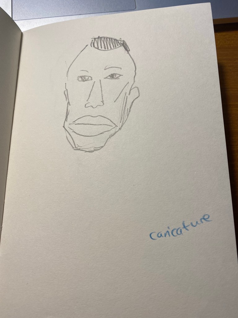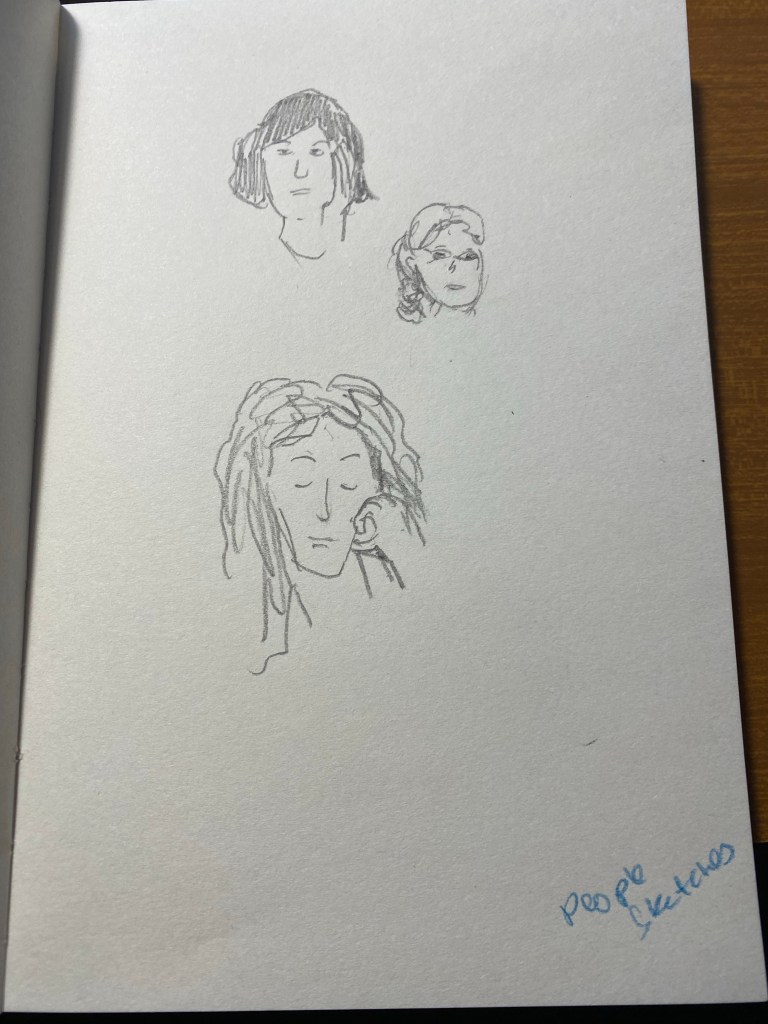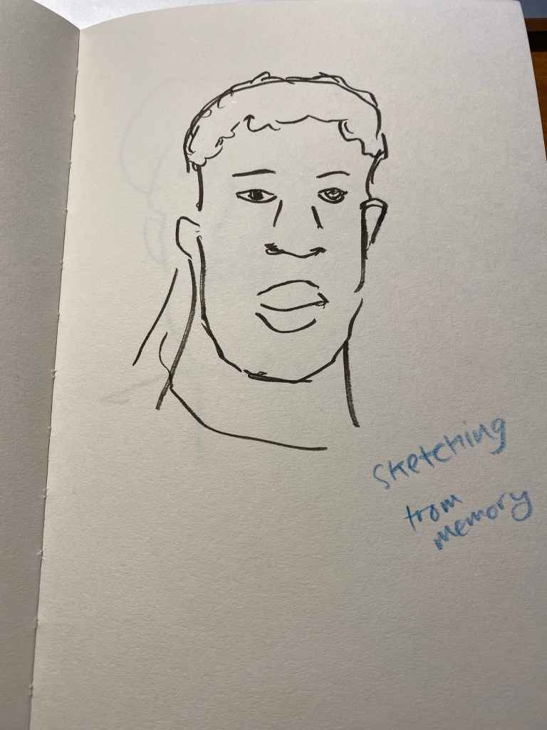 Then we did an exercise where we had 10 seconds to look at a moving person and try to remember what made them them, and then draw a portrait of them from memory. As Marina suggested, it’s easier if you describe the person to yourself in a few sentences.