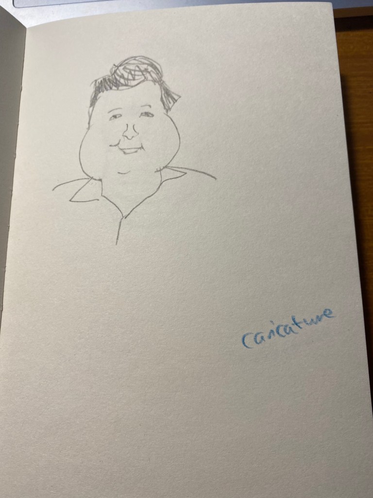 Then we did a caricature exercise, where we tried to draw people as not overly stylized caricatures. We has a minute for each, and I was starting to warm up at this point: