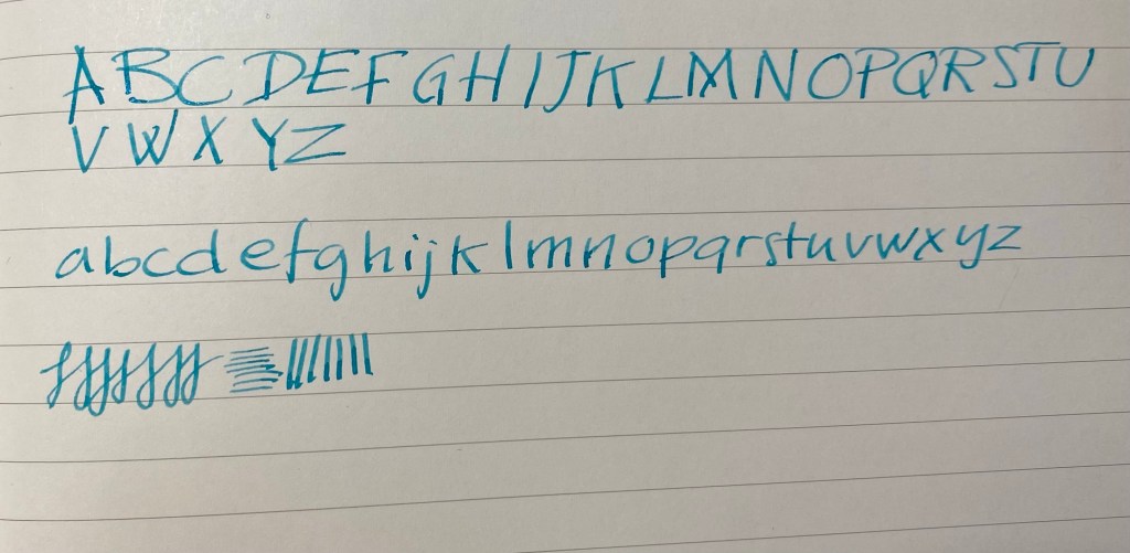Here’s a writing sample with the journalling nib. It’s a lot of fun to use, and very forgiving to whatever writing angle you use it with:
