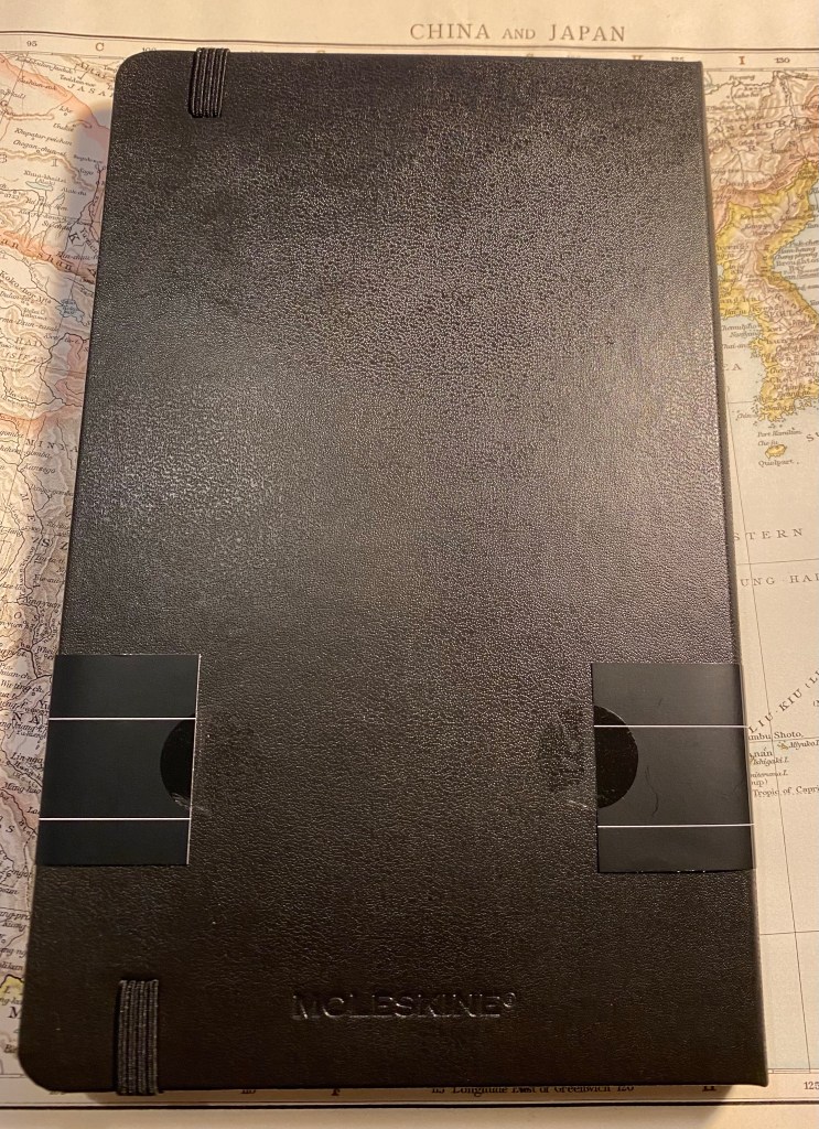 The back cover is a bit weird in that the paper wrap doesn’t reach all the way around and is just stuck to the cover with two stickers. The stickers are easy to remove and don’t leave any residue, but it’s the only Moleskine I’ve seen with this setup and I can’t help but wonder why.