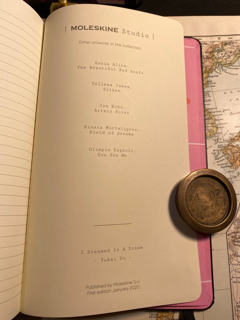 Inside the front covers is more of Yukai Du’s work, and it’s wonderful. This is where Moleskine shines, and I wish these artists could have had their work properly printed or even embossed on the covers of a Moleskine. They deserve it.
