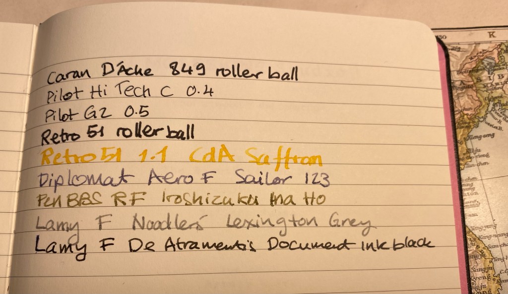 The paper is very good (not your standard Moleskine affair, which has its particularities). Ivory coloured, 100 gsm, not glass smooth but not textured, and it lays flat. There’s some writing samples ahead, but spoiler alert, yes it’s fountain pen friendly. There’s also the famous ribbon bookmark, which I wish was pink but in this case is black.