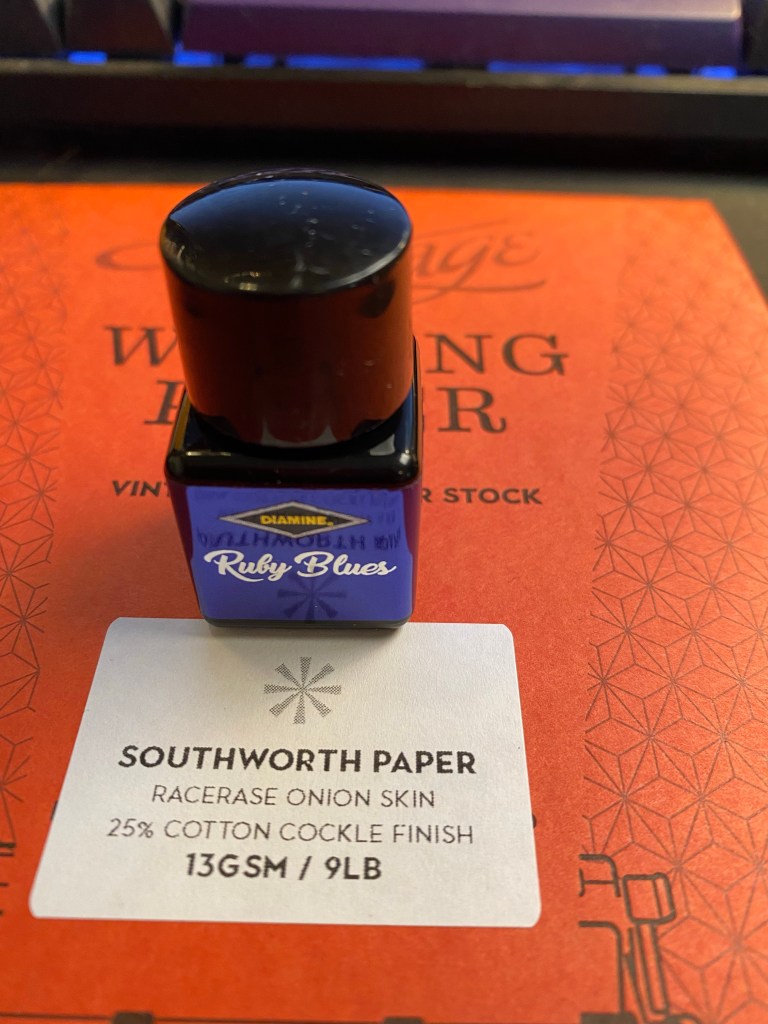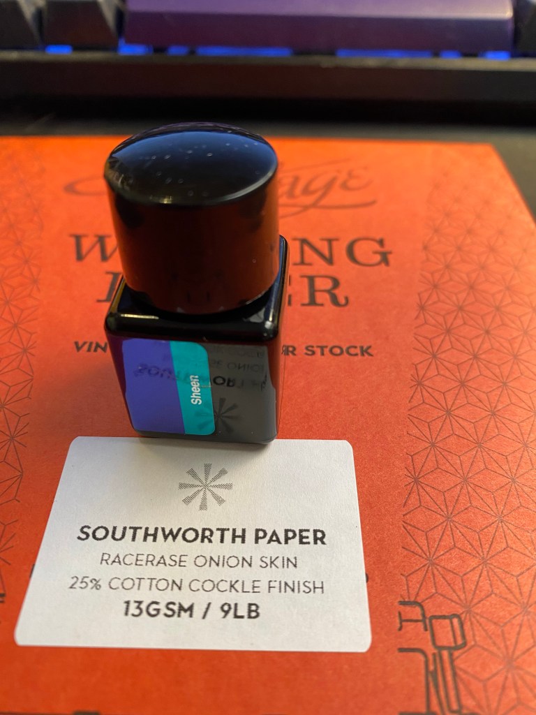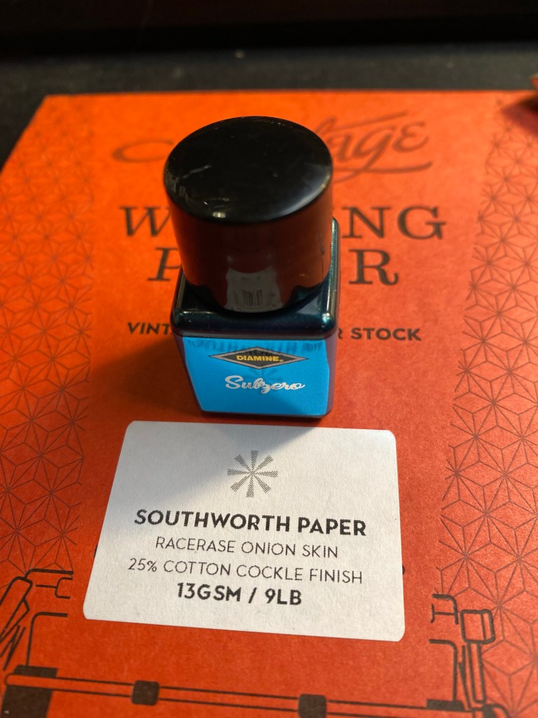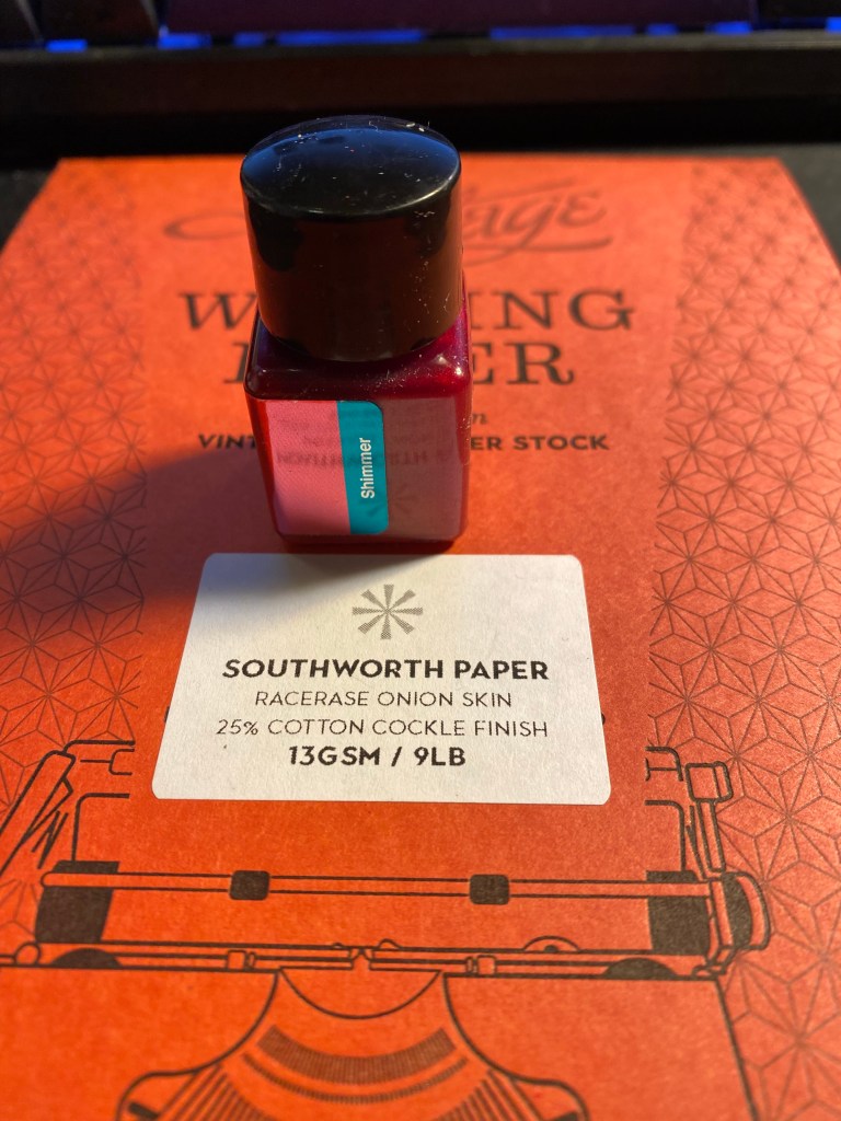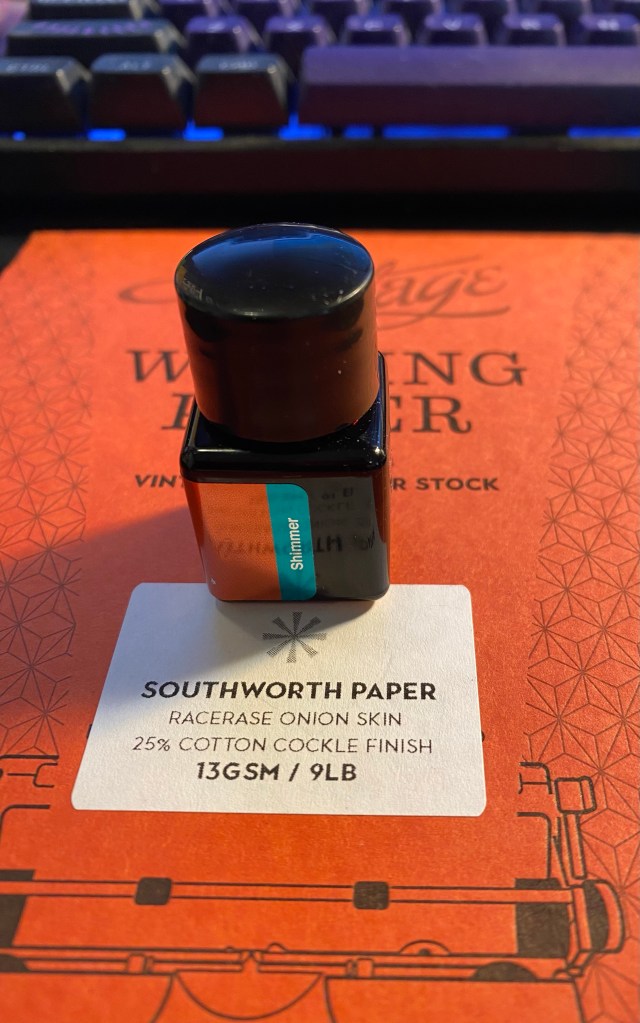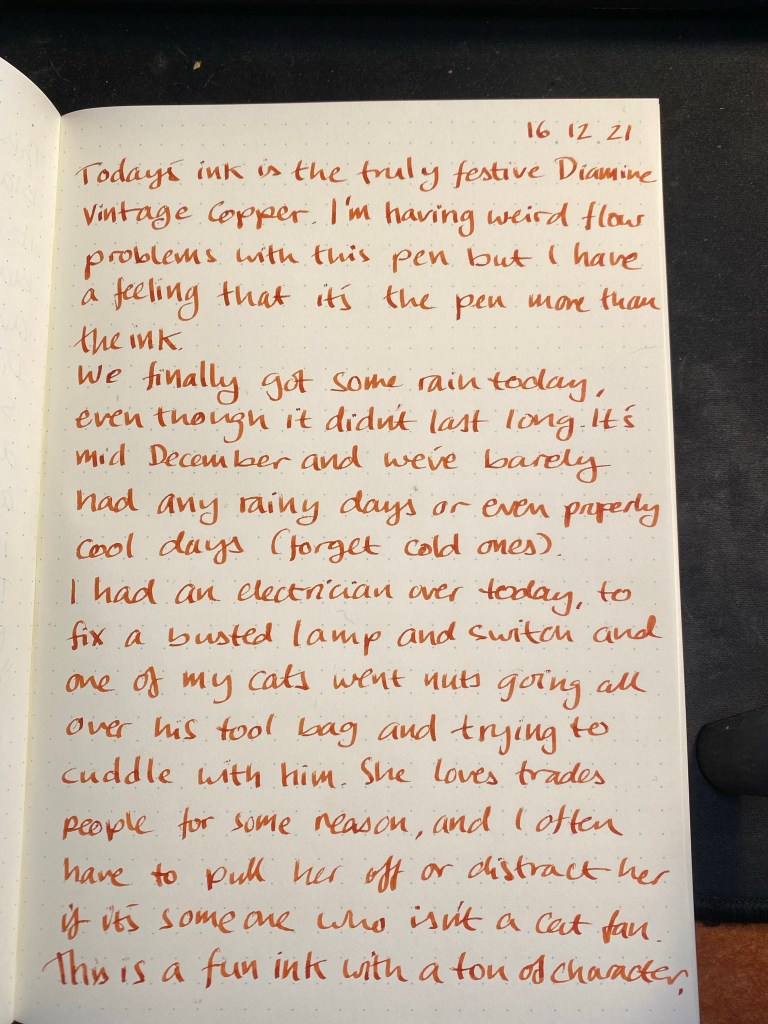 I used a Lamy Studio Terracotta with a fine nib to test out Diamine Pink Ice. Even with a fine nib you can see the shimmer: