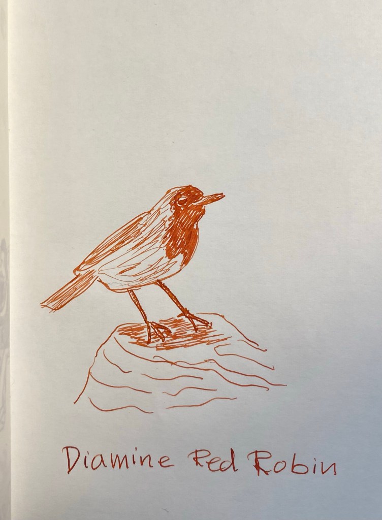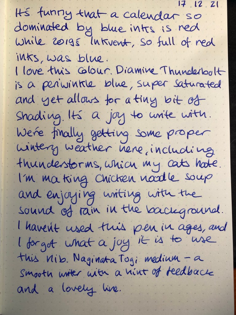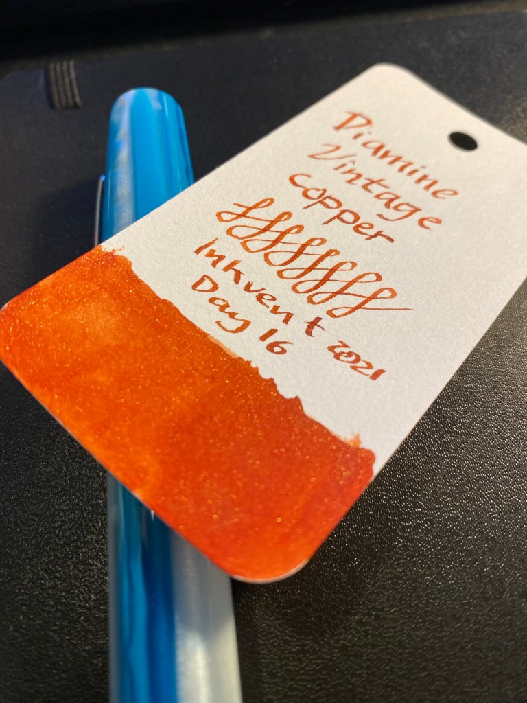Would I buy a bottle of Diamine Pink Ice? No, it’s a bit much for me. It is, however, a bright and cheerful ink with a lot of glitter and a lot of potential to make you smile as you’re using it. I’m glad that it was included in a calendar that has had a bit of a tendency towards the dark and muted side of colour.