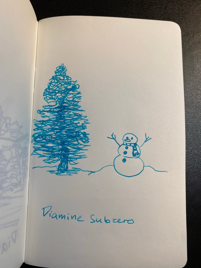 I decided to draw a quick icy landscape to test Diamine Pink Ice on Tomoe River paper. There’s very little shading with this ink, and a lot of glitter. A significant amount of glorious pink glitter: