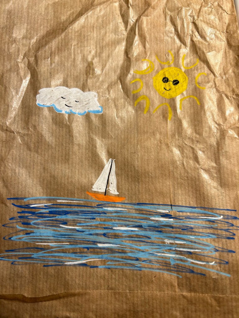 I then saw a group of kids with a metal detector, searching for treasure in the sand, so I sketched them quickly: