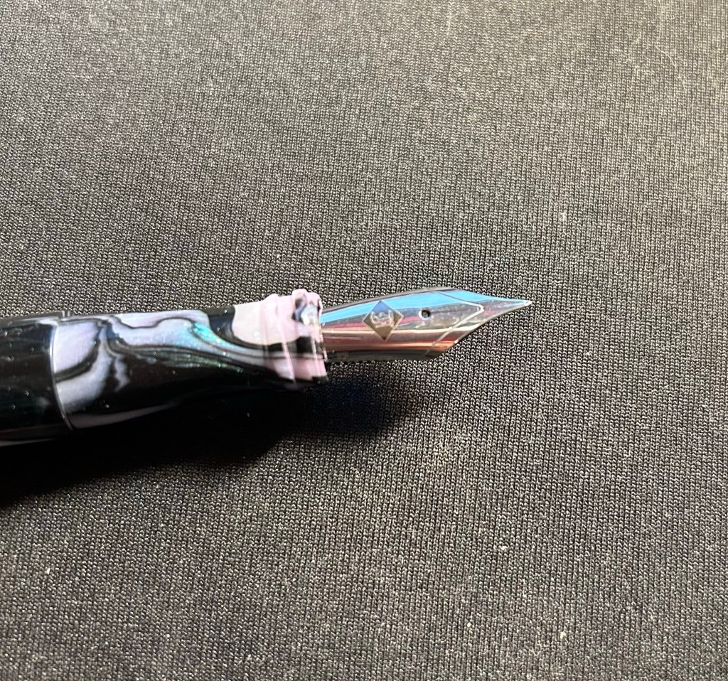 This collaboration between Franklin Christoph and Italian pen store Stilo e Stile is a model 3 pen with a gorgeous black, white and green resin with chatoyance, sparkle and a great deal of depth to it. Photos flatten it out and do it no justice. It’s a breathtaking material.