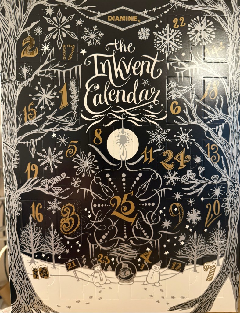 As I have done every year since Diamine started issuing their Inkvent calendars, I will be reviewing each of the inks in the calendar, publishing one post per day for 25 days, and then a summary post looking back at the calendar as a whole. As a reminder, there are 24 doors with 12ml bottles of fountain pen ink behind them, and one 30ml bottle of ink behind door 25. All of the inks in the Inkvent calendar are new for the calendar, and they will all likely be issued in full “black edition” glass bottles sometime mid 2025.
