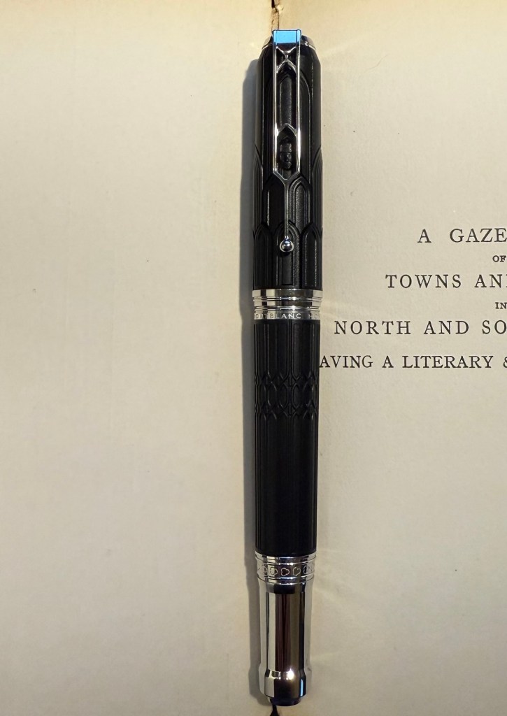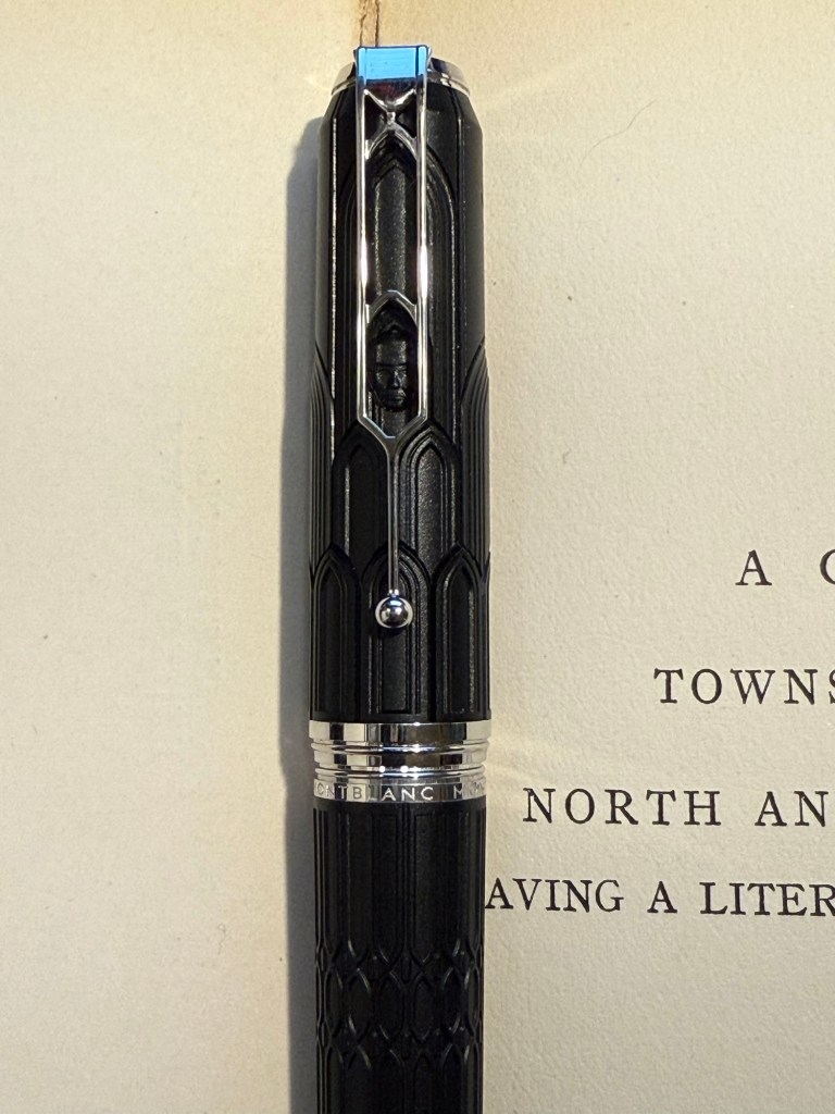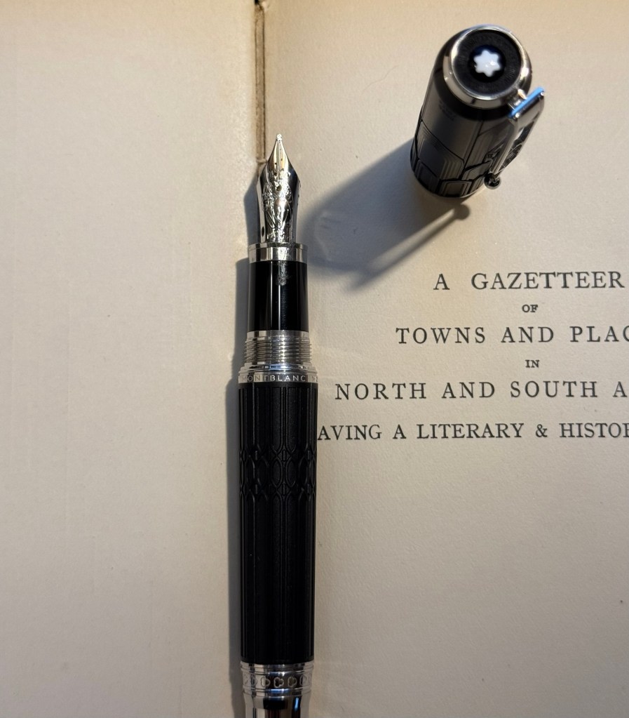 - Montblanc Writer’s Edition Victor Hugo medium nib with Montblanc Around the World in 80 Days ink. I bought this pen in Mora Stylos in Paris before they closed mainly because I adore the Notre Dame de Paris cathedral and it’s featured on this pen. Hugo has the honour of being the saviour of this extraordinary cathedral, and though I shy away from Montblanc limited editions (talk about overpriced) I thought this one was worth purchasing. The ink was last in rotation, in a vintage Montblanc, last month. I just can’t get over how unrelated it is to the green-gold elephant on the box, and I’m not sure what to make of it. I was expecting it to be more like Alt-Goldrün than like the bluish-grey (Payne’s Grey really) that it is.
