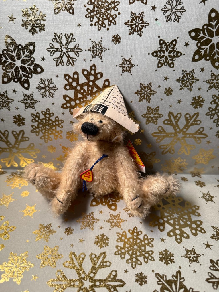 Today’s bear is a German bear from Clemens Bears – a relatively big manufacturer. He’s number 667 out of 777 and he’s called Keoki. I love his puppy like face and his paper hat.