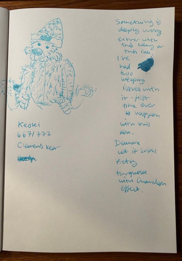 Setting aside the leaking issues, I love Diamine Let it Snow. I think the colour is perfect, the name is perfect and the chameleon effect and the shading make it an interesting ink. What did you think? Did you have flow issues with this ink?