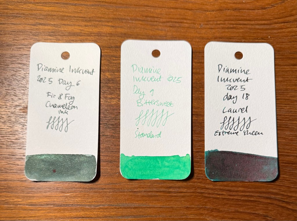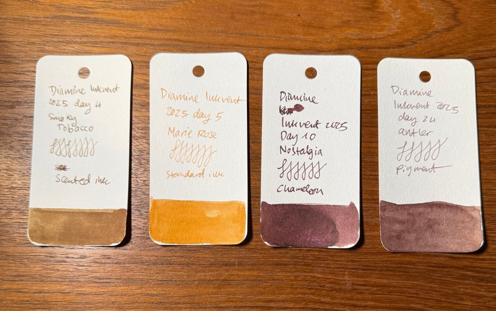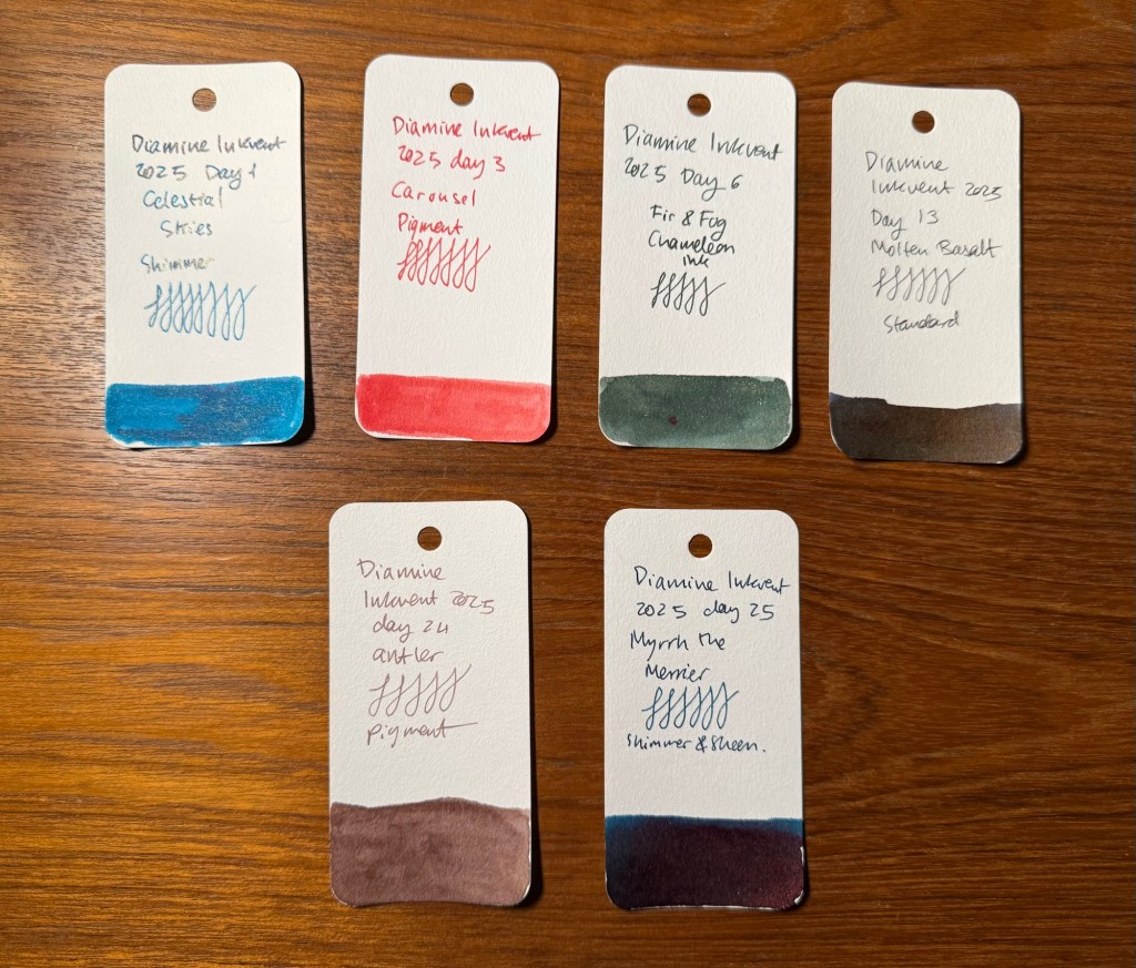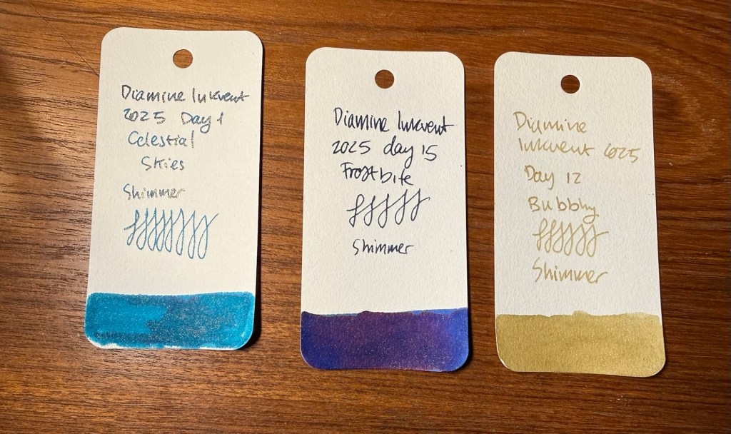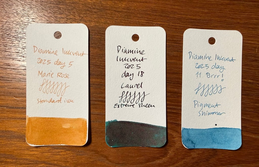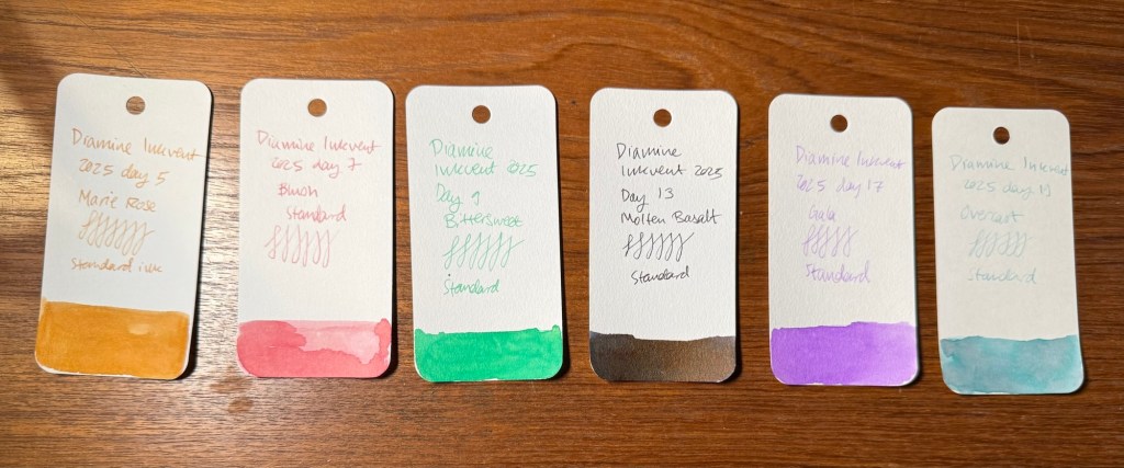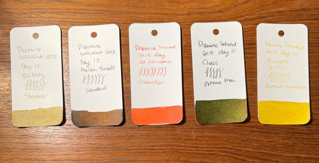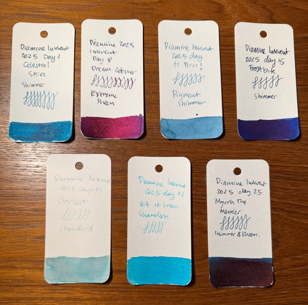 Diamine Inkvent 2025 the Teal Edition is over, and what a wild ride it has been. The 2025 edition introduced Pigment inks, which are waterproof when dry, and some interesting ink colour and property combinations.