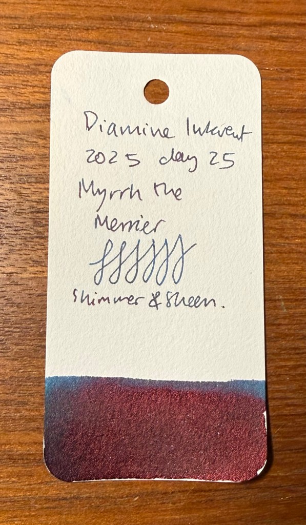 There was one Shimmer and Sheen ink, the last but not least Myrrh the Merrier. I expect the last ink in the calendar to have Diamine going all out, and they did well with this ink.