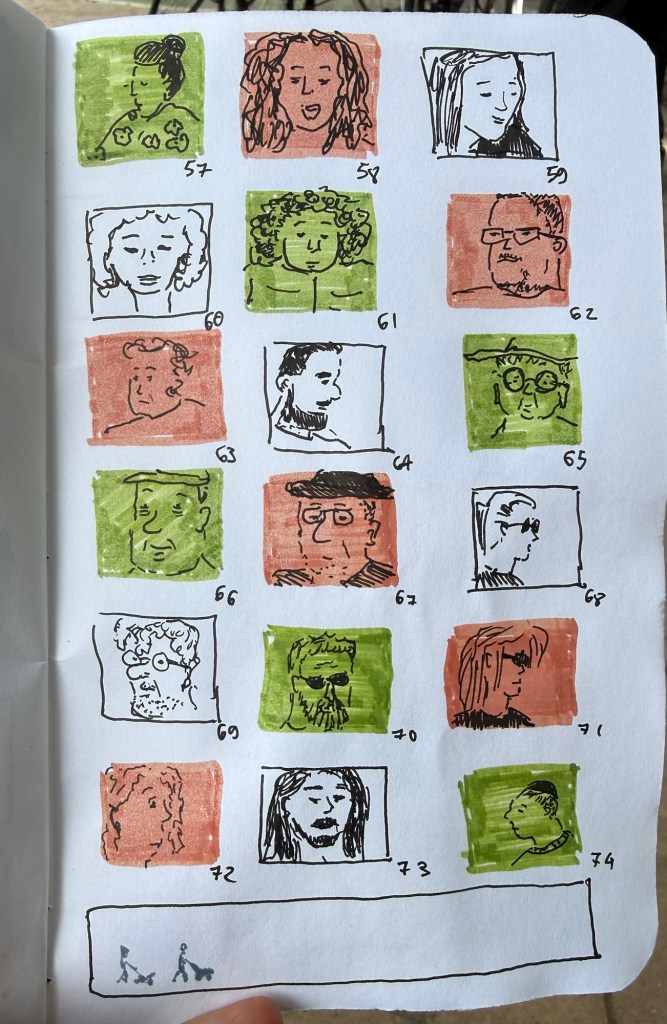Last day of the challenge and I got all 100 (well, 101) people done. Today includes people in the streets near my house as well as people in the shelter.